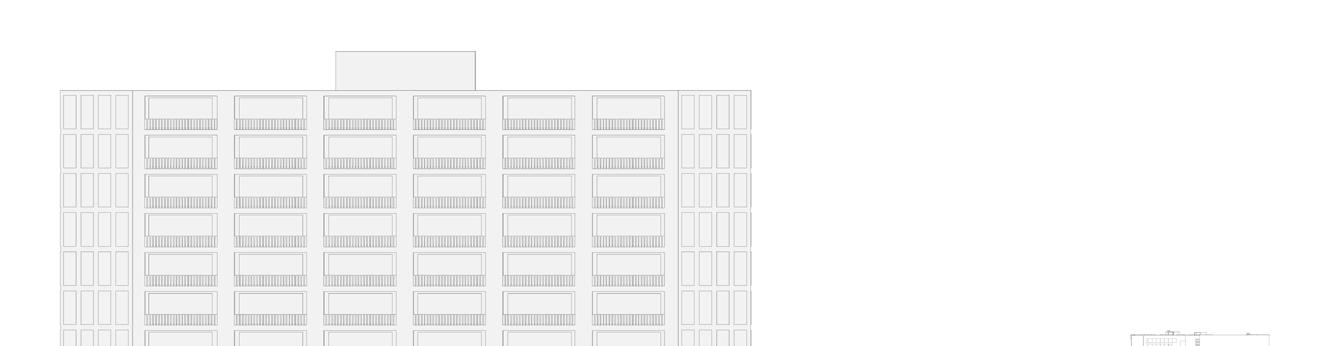 The public areas are located in the middle axis of the building, with corridors and aligned residential units extending to both sides. Distribution of stairs and elevators meet the needs of fire evacuation and circulation.