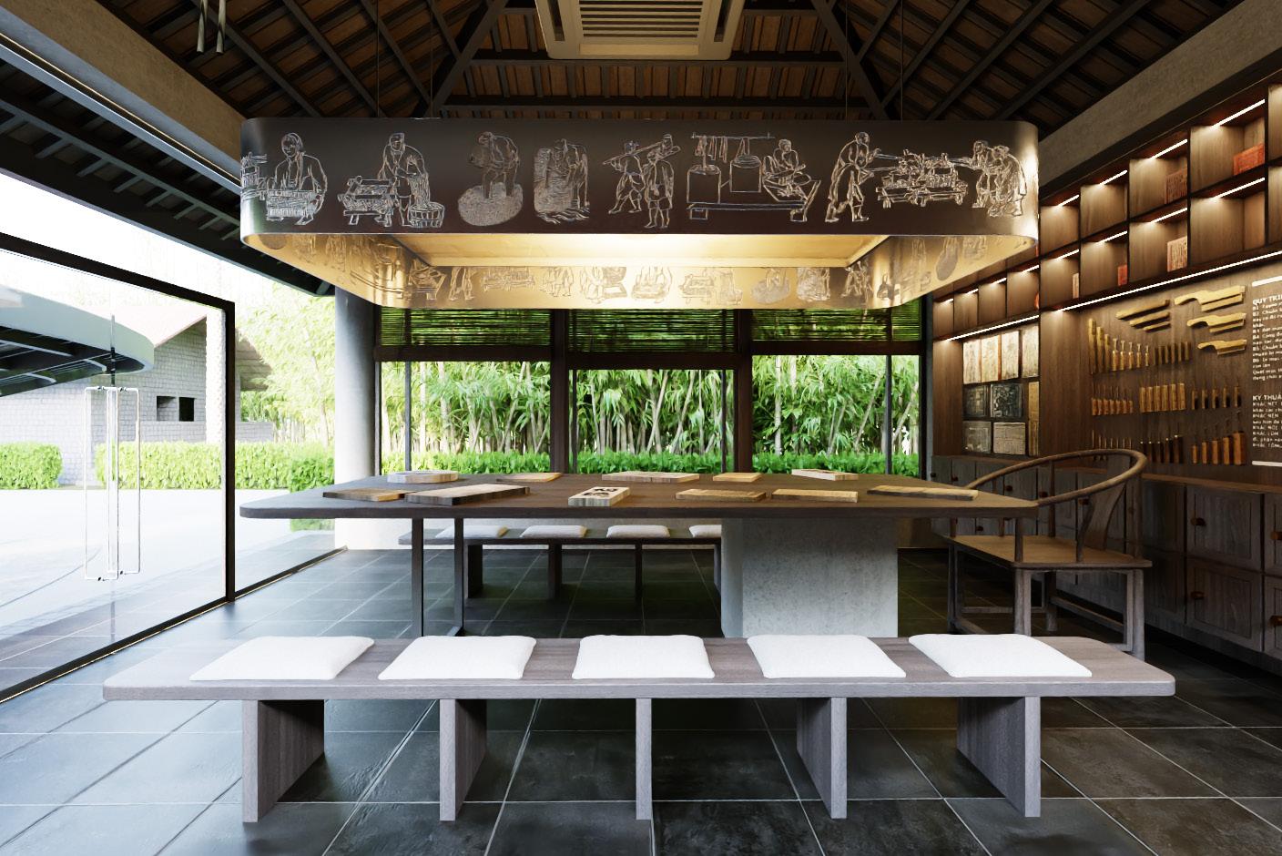 Công trình có diện tích khoảng 202m2, 1 tầng, phục vụ tối đa 20 khách tham quan. Là một công trình mang tính triển lãm và trải nghiệm, công trình truyền tải đến khách tham quan về lịch sử hình thành, các thành tựu, sản phẩm cho khách tham quan.
