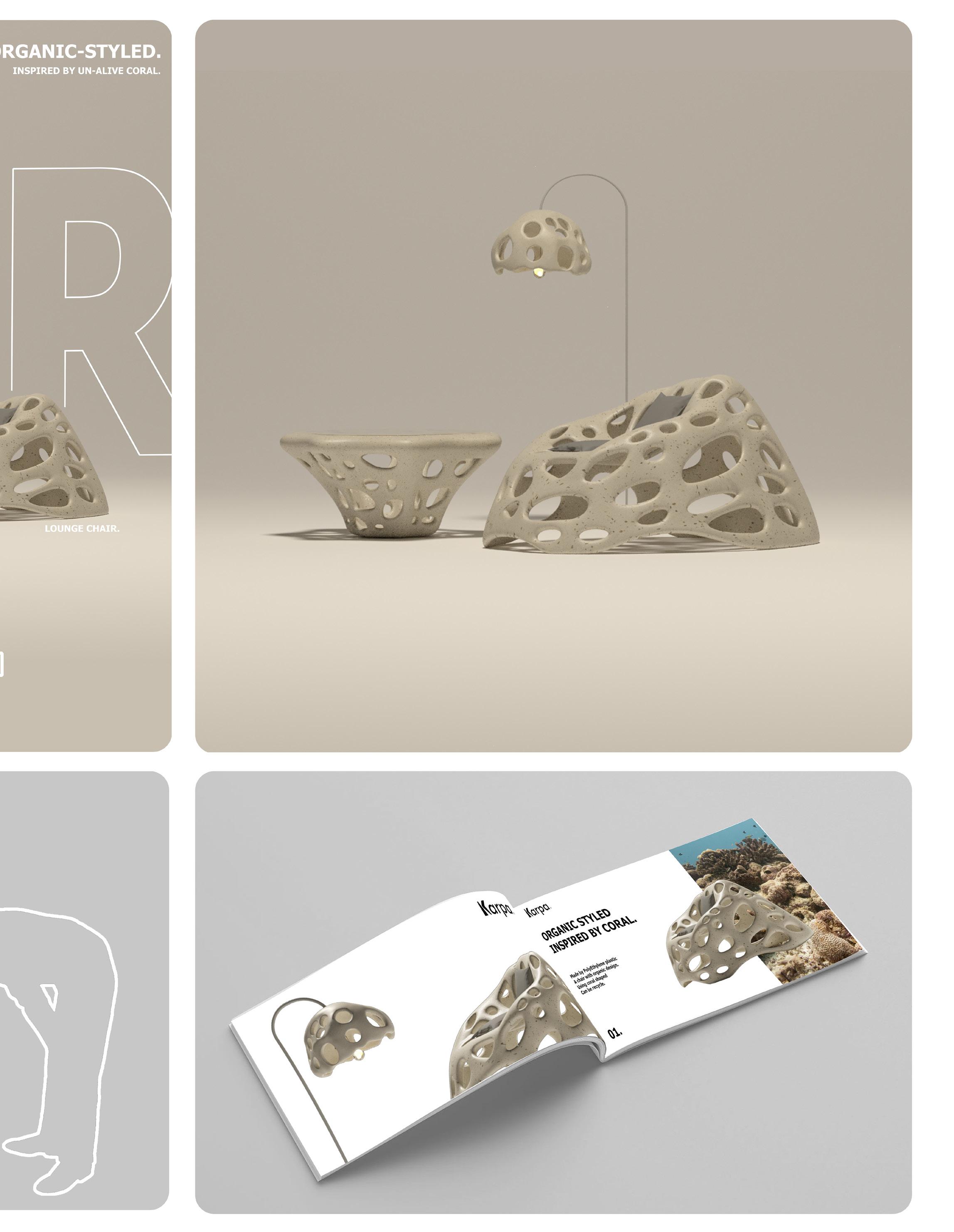 Là một đồ án thiết kế tạo dáng, ý tưởng bộ sưu tập lấy cảm hứng từ màu sắc và tạo hình của san hô chết.