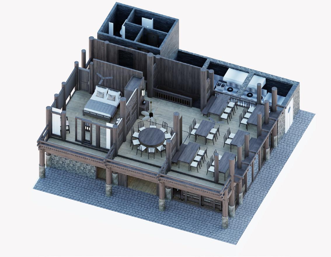 Đây là đồ án đầu tiên trong chương trình học chuyên ngành sinh viên được sử dụng phần mềm dựng 3D. Công trình có diện tích khoảng 200m2, 2 tầng, phục vụ tối đa 70 khách hàng
