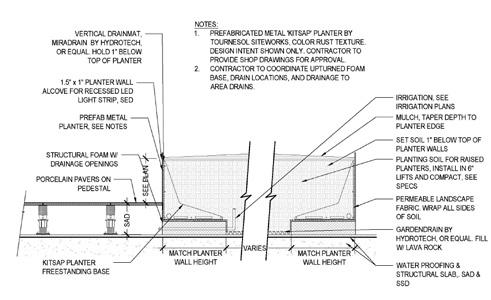 The scope of work include courtyards on six different floor levels. Extensive studies were done for grading, pedestal paving systems, structure and planting on podium and native planting for steep slopes. We also actively coordinate with the architect and civil engineer in this process to make sure the design address the complex conditions of the site.