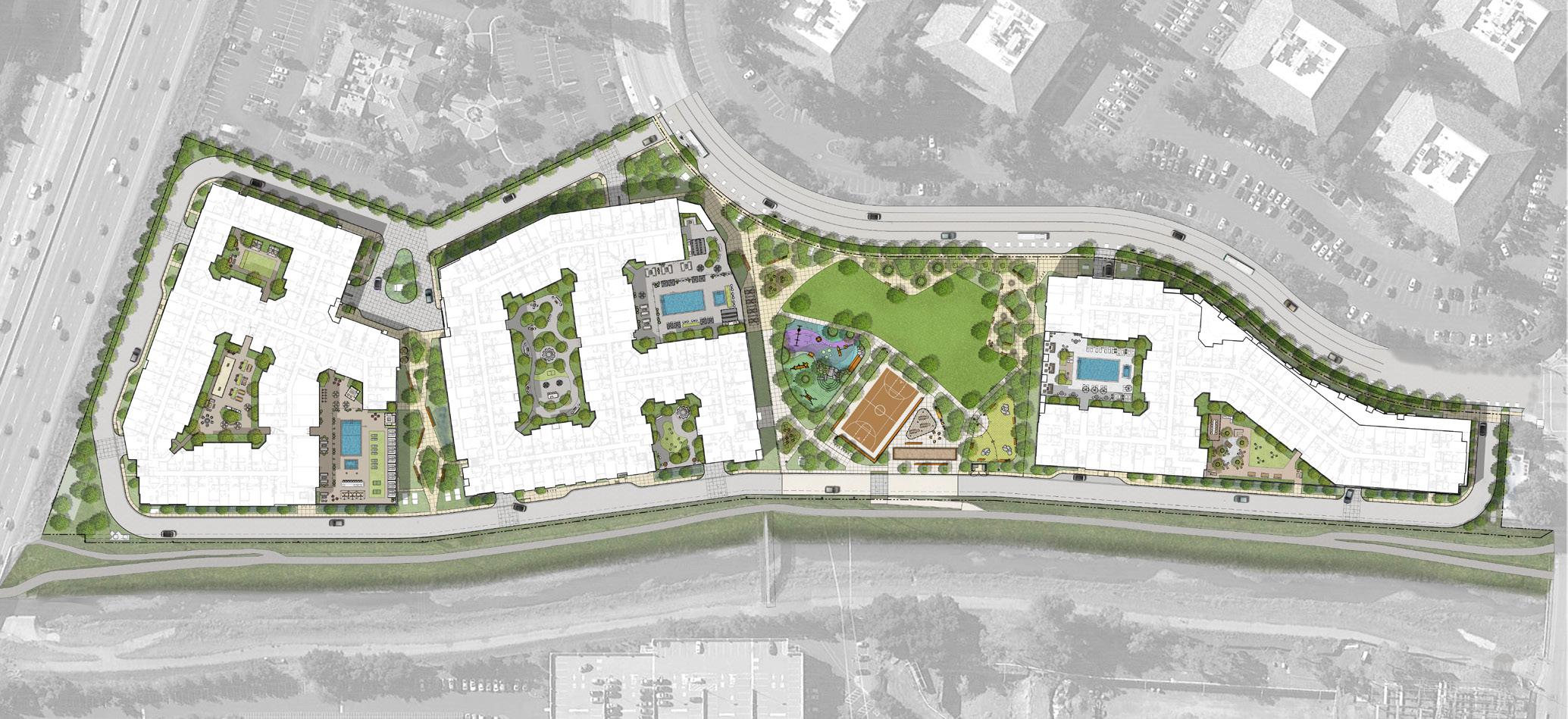 This high-end multi-family residential project’s scope of work includes amenity spaces on both the ground level and top of roofs of each building. A park with public access and active programming lies in the center of the site, ensuring that the site serves as a dynamic hub that caters to the diverse requirements of the community.