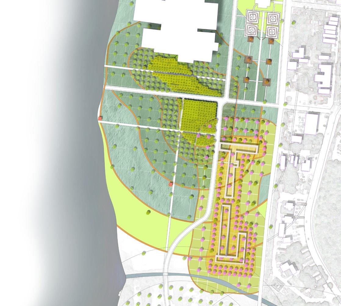 A slope was designed to protect the city from flooding while registering future flood level with terraces