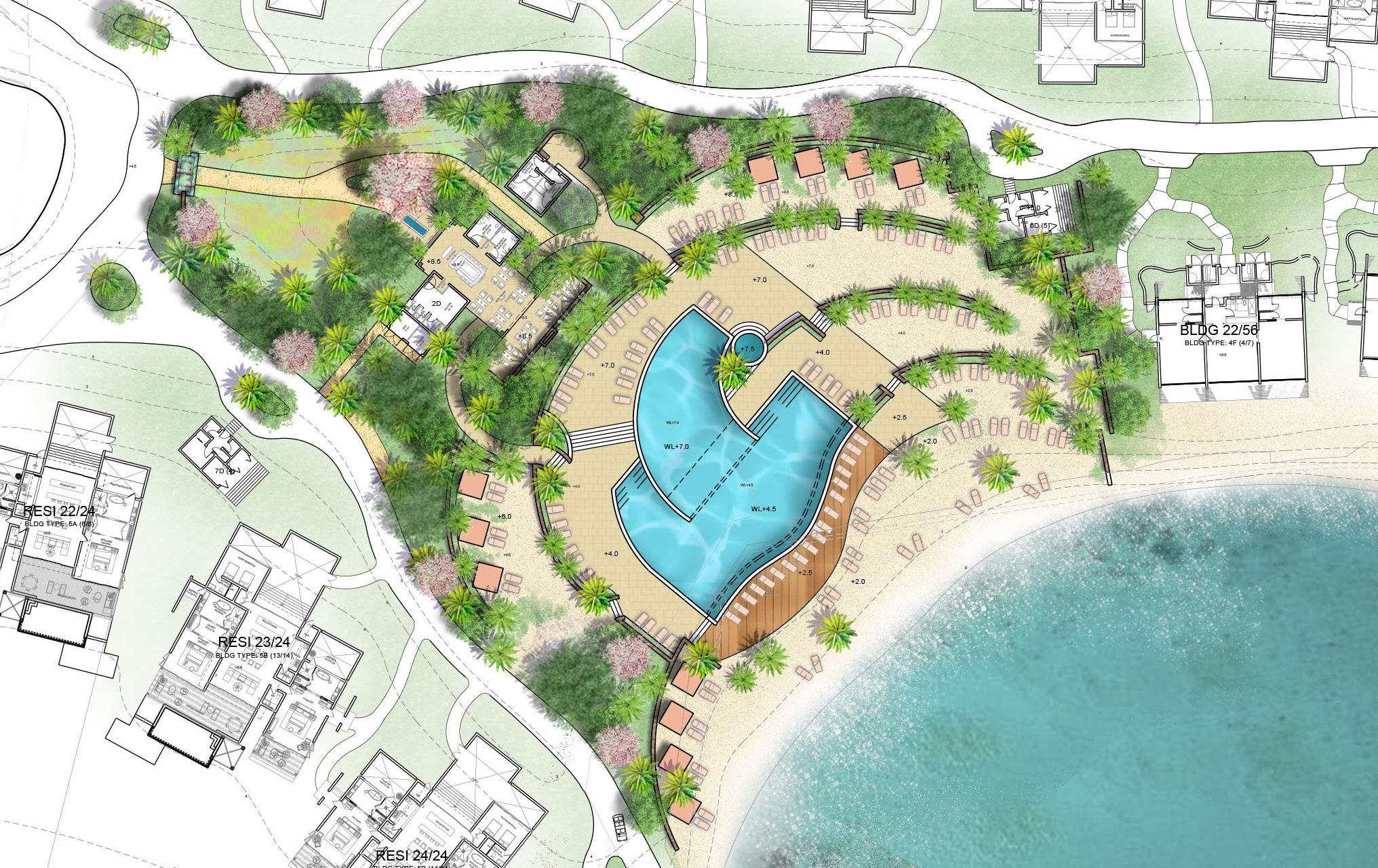 Caye Chapel is dedicated to reconnect owners and guests to the wonder of nature. All hotel guest rooms and residences have beach access, which is screened from adjacent properties with native tropical plantings. The naturalized landscape connects people to amazing amenities including infinity-edge pools, spa, family club, dive center, overwater dining, & retail stores. The island is perched on the edge of the Belize Barrier Reef and the landscape design strive to protect native habitat and culture by implementing a nursery and boardwalk that connects a national geographic station with preserved mangrove. As the only supporting staff on the team, I learned to manage massive CAD base files, participate in the design process, coordinate with architects & engineers, and communicate with clients.