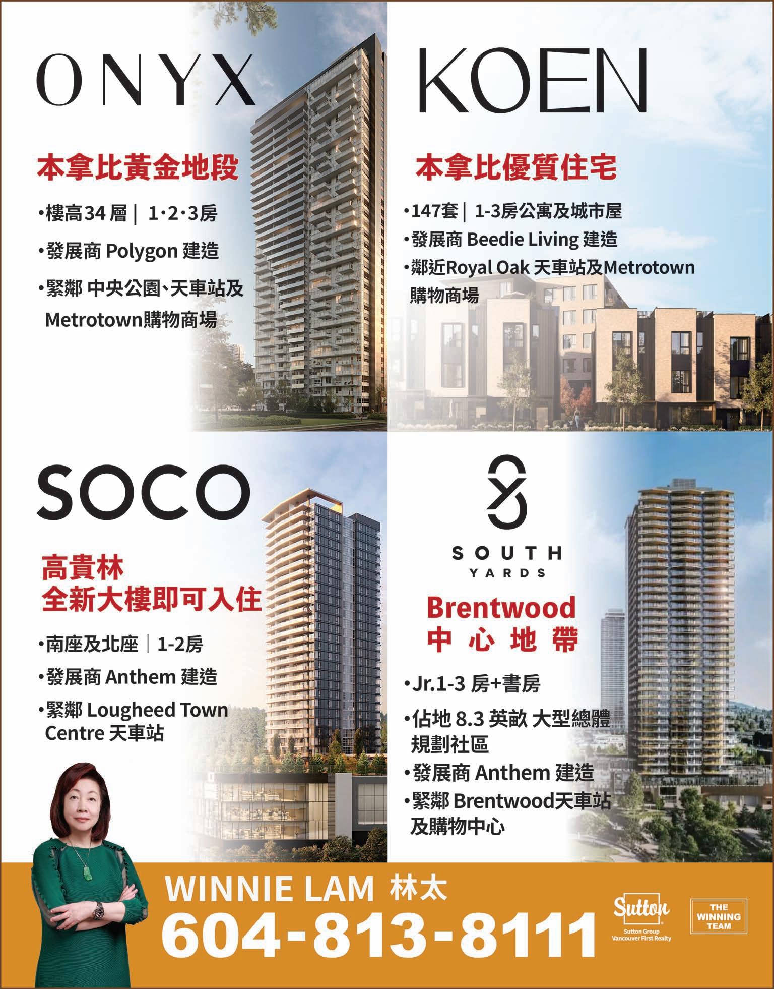 山景和城市景!位於溫西 Cambie 走廊位置, ‘ CambieGarden’全新豪華水泥公寓,1 房 1 衛共 531 平方呎,有觀景陽台可遙望山脈、城 市和高爾夫球場美景。優雅住宅內擁有 Wolf 煤氣爐、Subzero 冰箱、酒櫃、石英檯面、硬木 地板、空調、電動百頁窗簾、LED 鏡子,1 車位 和 1 儲物間。高級建築設施,室內游泳池、水 療中心、健身室、室外游泳池和大平台。交通 購物極為方便,2-5-10 新房保修,安心體驗 令人驚嘆的城市生活。