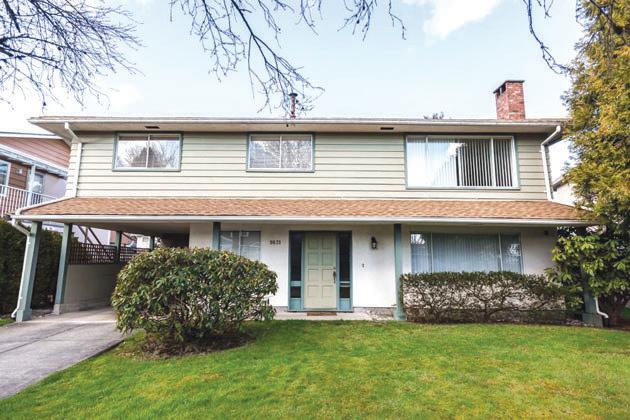 列治文近壹路南北向大地 10,953 呎,73x150,開發商 良機,屋 29 年,4395 呎 7 房 5 ���� 廁,3 車房,地點方便,鄰 近中小學,社區中心,餐館, 超市,銀行等。有機會與鄰近 地合併發展聯排別墅。