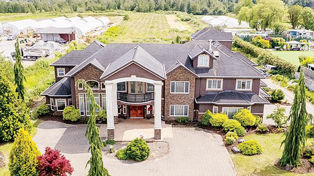 10111 No6.Road 列治文超級宏偉豪宅,佔地 4.87 英畝(約 212,137.20 呎),坐北朝南,高挑天花與名貴水晶吊燈搭配 美麗螺旋樓梯帶領進入氣派十足豪宅。室內約 10,296 呎,共 8 間臥室,8 浴室和 2 客廁,主層設有 1 卧室套房,上層 7 間套房,書房,圖書館,2