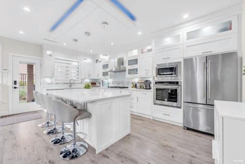 個美食廚房配花崗石中央島台再加中廚,配高端品牌家電 。電影院,酒窖,酒吧,地熱、空調、清風系統、攝像機保安系統等居家智能裝置。超過 10 個開放式停 車位。鄰近高爾夫球場、Ironwood 購物中心和 SilverCityRiverport。請約看!