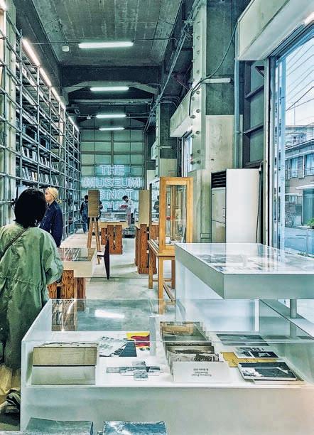 空間裏除了DAIKEI MILLS設計工作室以外,也與黑膠 商店VDS(Vinyl Delivery Service)及書店twelvebooks合 作。在保留着原有高架橋底的粗獷混凝土肌理下,利用 鷹架與利落的燈管所構築而成的開放式格局的空間中, 擺上書籍、黑膠唱片或各種藝術展示作品,創造出混雜 共存,甚至是有點像倉庫或工地現場的空間氛圍。希望 無論是遠方來的訪客,或是本來就居住於下町的居民,
