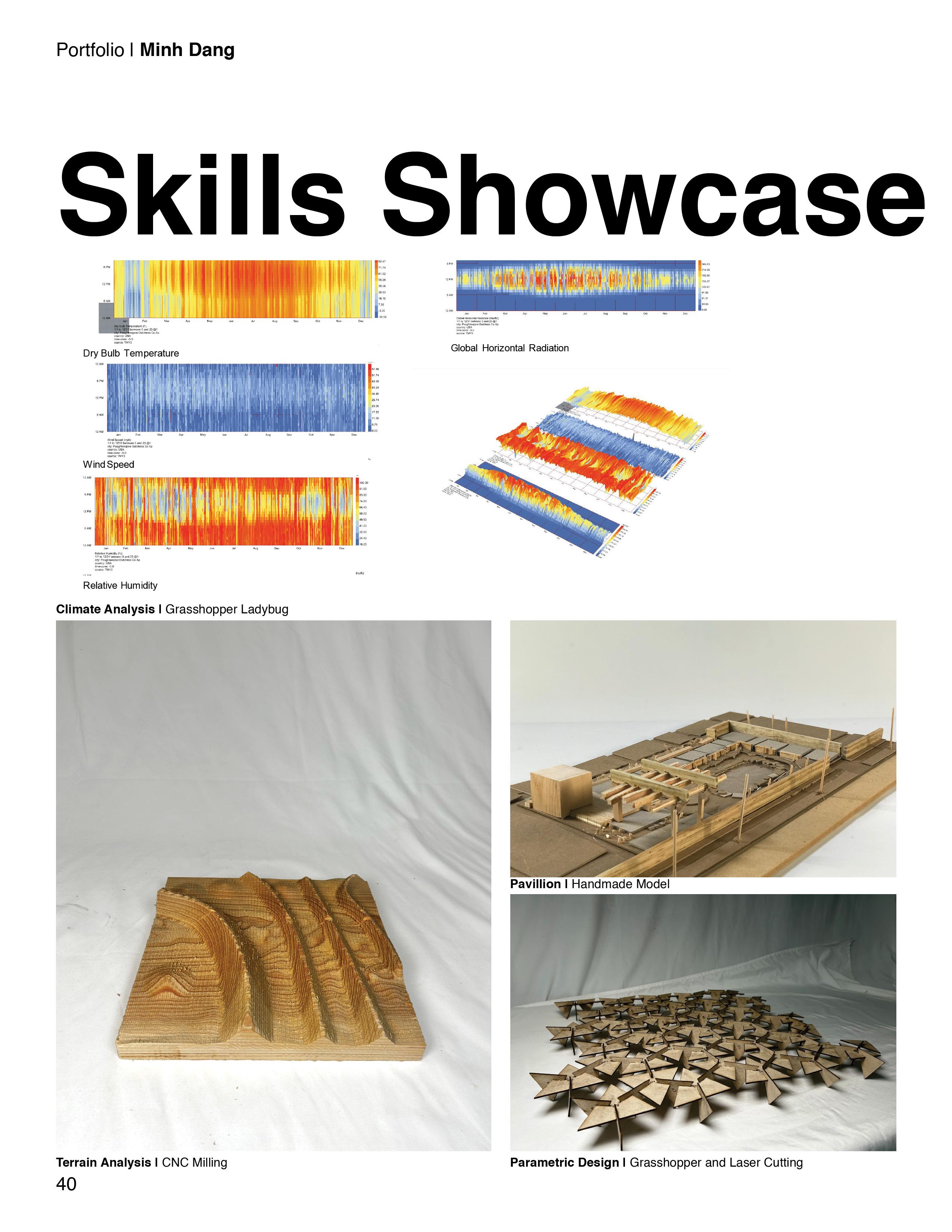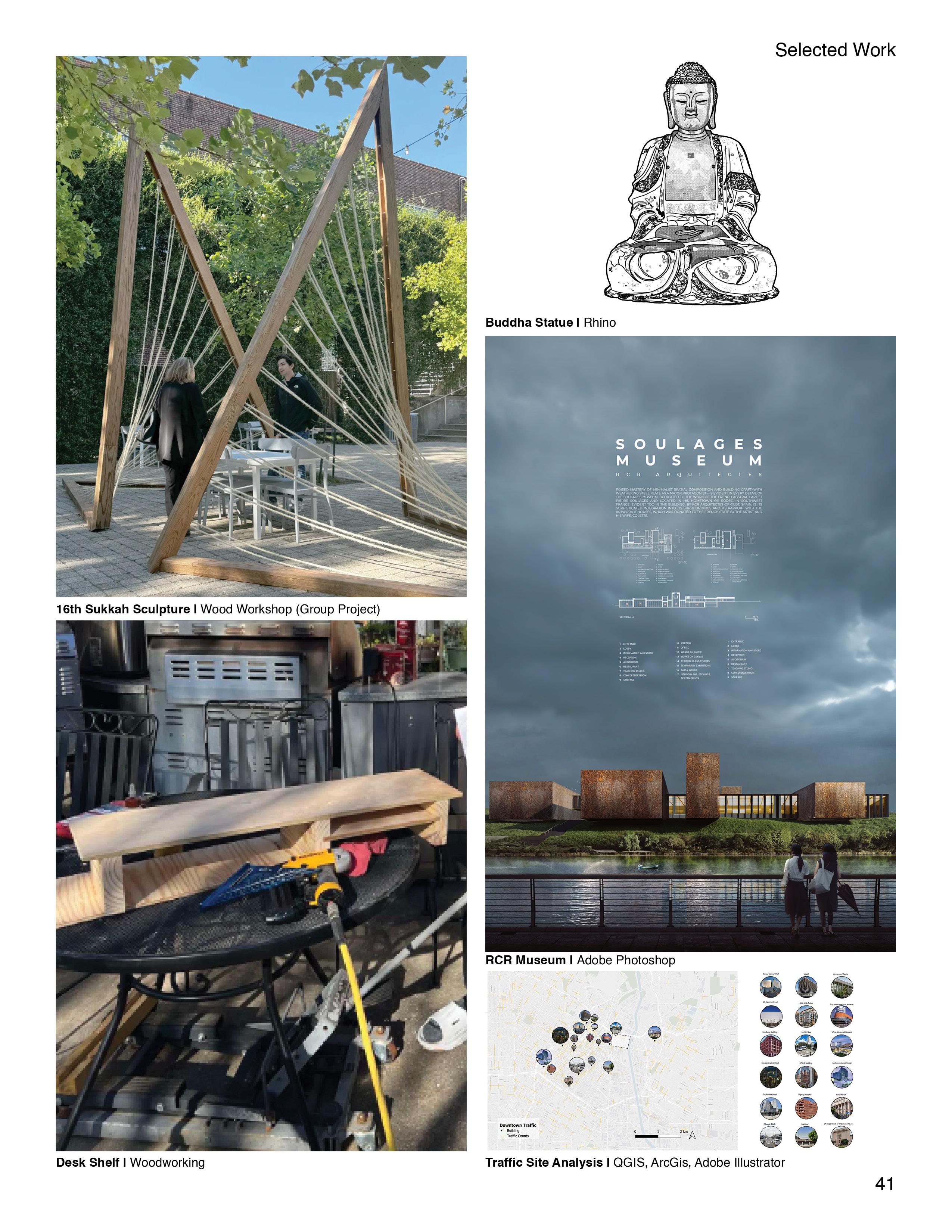 Design: Rhinoceros, V-ray, Lumion, Adobe Suite, Microsoft Suite, Google Suite, ArcGIS, QGIS, Revit (Developing)
