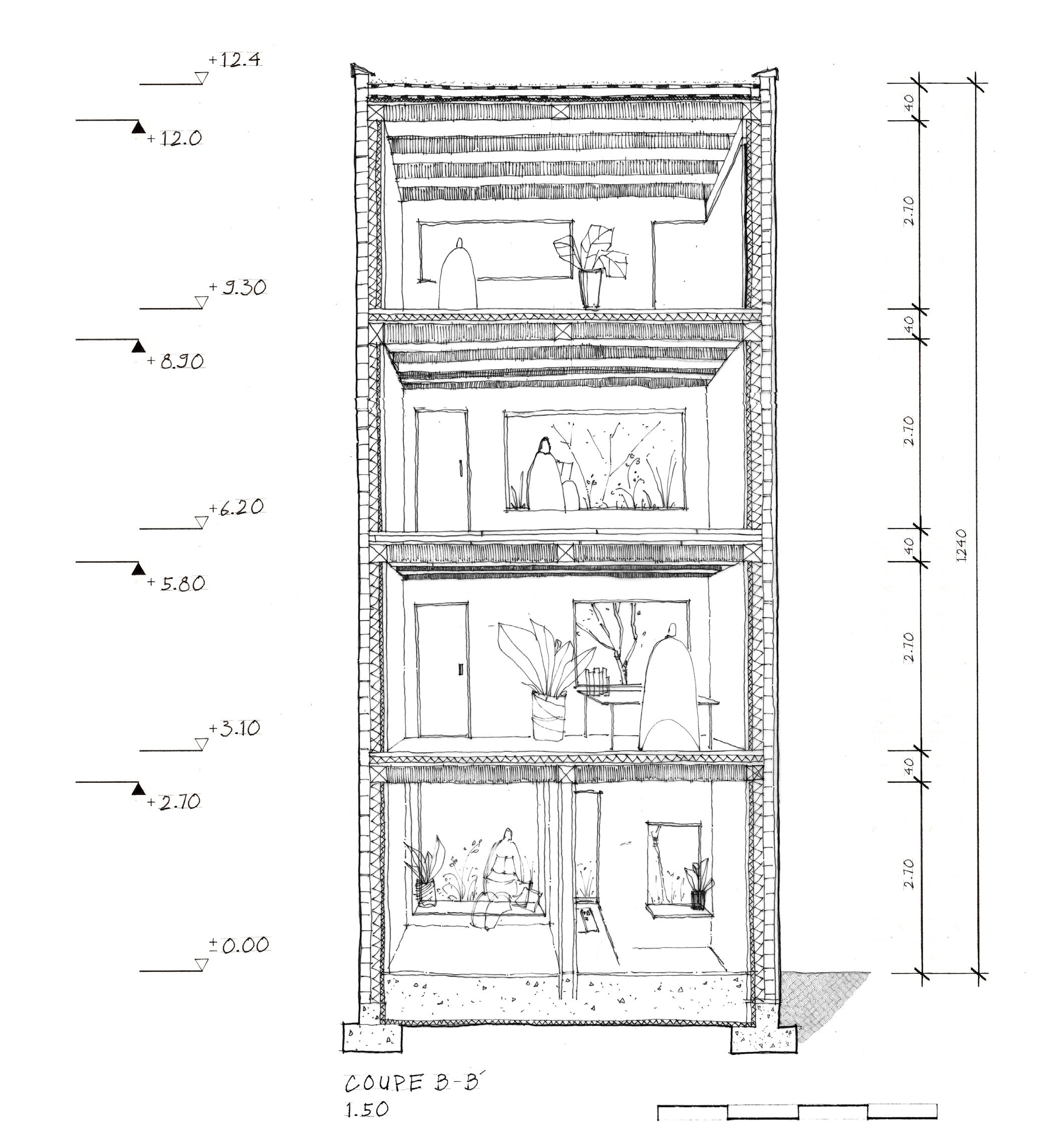 The site is located in Paris, surrounded by high-rise apartment buildings. The project’s design objectives aim to address the issue of light capture and create intergenerational connections between the building’s users through the central garden