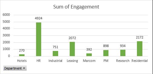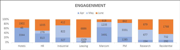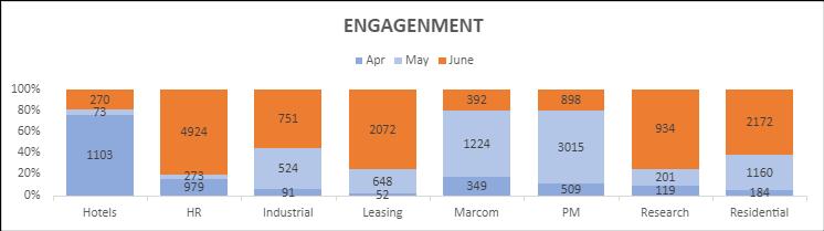 Research, Leasing, Residential, HR and Industrial better performed when considered to last months while Hotels, Marcom, PM lower performed.
