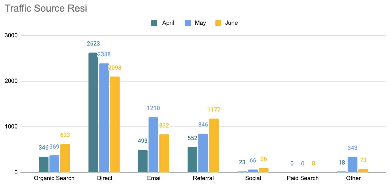 Based on data from Google Analytics, despite the decreased pageviews for QMR vs May, thanks to 1st efforts on SEO, the pageviews for Research / Blogs increased vs May, which overall resulted in a stable traffic from organic search and increase in pageviews vs May.