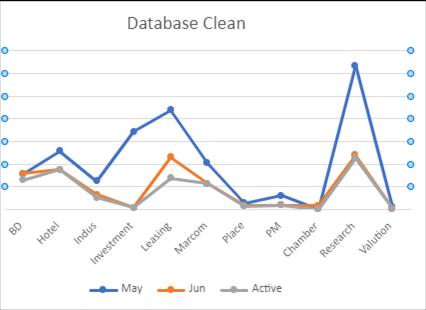 NEW : DATABASE CLEANING In June, we continue updating the New Masterfile with all active data, adding full information and segmenting the database for a few departments: ● Utilizing the database from masterfile to Salesforce, update monthly, building data Extension and Journey Builder that make our eDM campaigns become more effective ● Completed update and clean data information as much as possible (Full name, source of data, position level, duplicate email, phone number, ...), especially input Industry of companies to database BD and Industrial masterfile + Research and Leasing in process ● Added data status validated from EDM ( 180k active emails in total now) ● Added new data from departments ( Residential HCM 10k emails, Chambers 826 emails ) to Masterfile In July, we will update information for S22M masterfile, Industrial masterfile and create Template Journey for eDMs with full databases for each departments in Data extension.