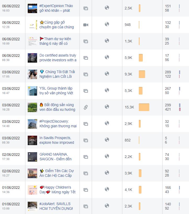 • Report showed Colliers and JLL were having a slight removal in brand volumes, featuring Real estate overview and Residential for sale as their primary attribution. Observably, these brands emphasized their leading speeches about real estate tendencies and new shifts in brand investment, especially worker’s housing, and northern investors pushed hard into southern markets (Binh Chau Ho Tram) to expand their reputations.