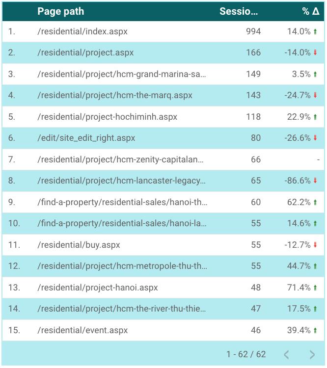 The efforts of marketing campaigns improved the traffic from EDM and social media. Some of highlight landing pages with high traffic this month are Techcombank Tower (886), Place (754), S22M (740), Lancaster Legacy (618), PM service (606), mostly resulted from targeted marketing campaigns.