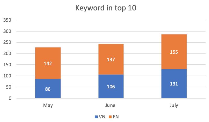 New initiative - SEO Savills Website Project What has been done in June : • Optimize content on old Residential pages + blogs : 15 Resi pages, 20 blogs • Optimize content on all new created blogs • Publish 5 landing pages for 5 priority services and highlight on homepage 2 months since deployment, what has been achieved : • Increase of Traffic from organic search, esp. VN web • Number of VN keywords in top 10 increased from 86 to 131, Eng kw from 142 to 155 • Out of the 135 main kw : ➢ Top 10 increased 17 kw from 14 to 31 kw