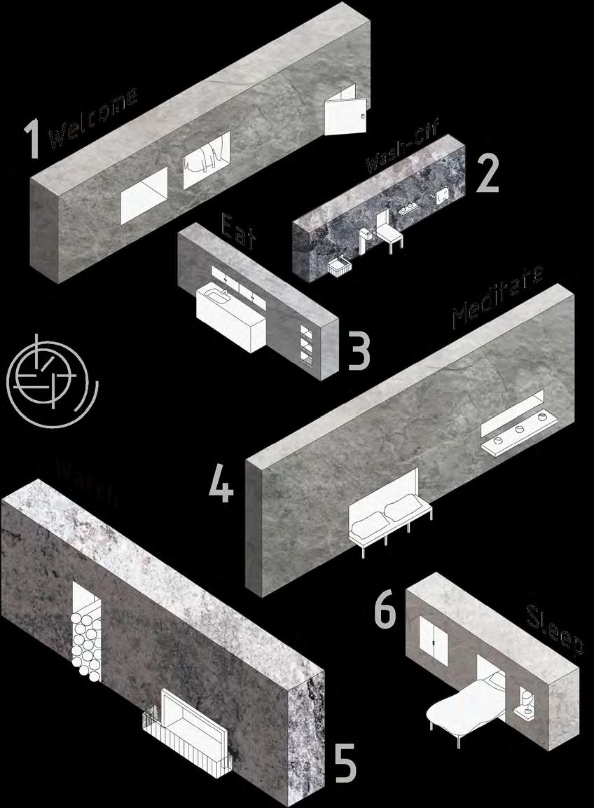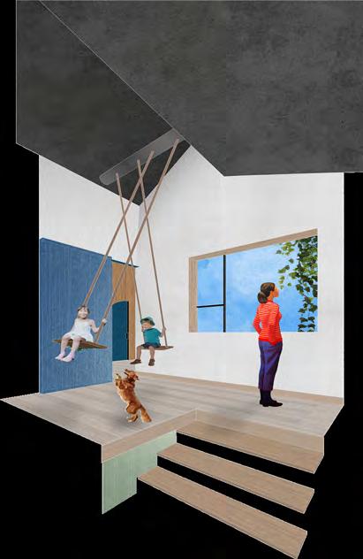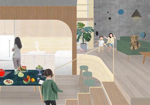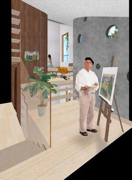 Role/ Designed housing units and a multi-functional core furniture system. Modeling and visualization for section model and Perspective drawing