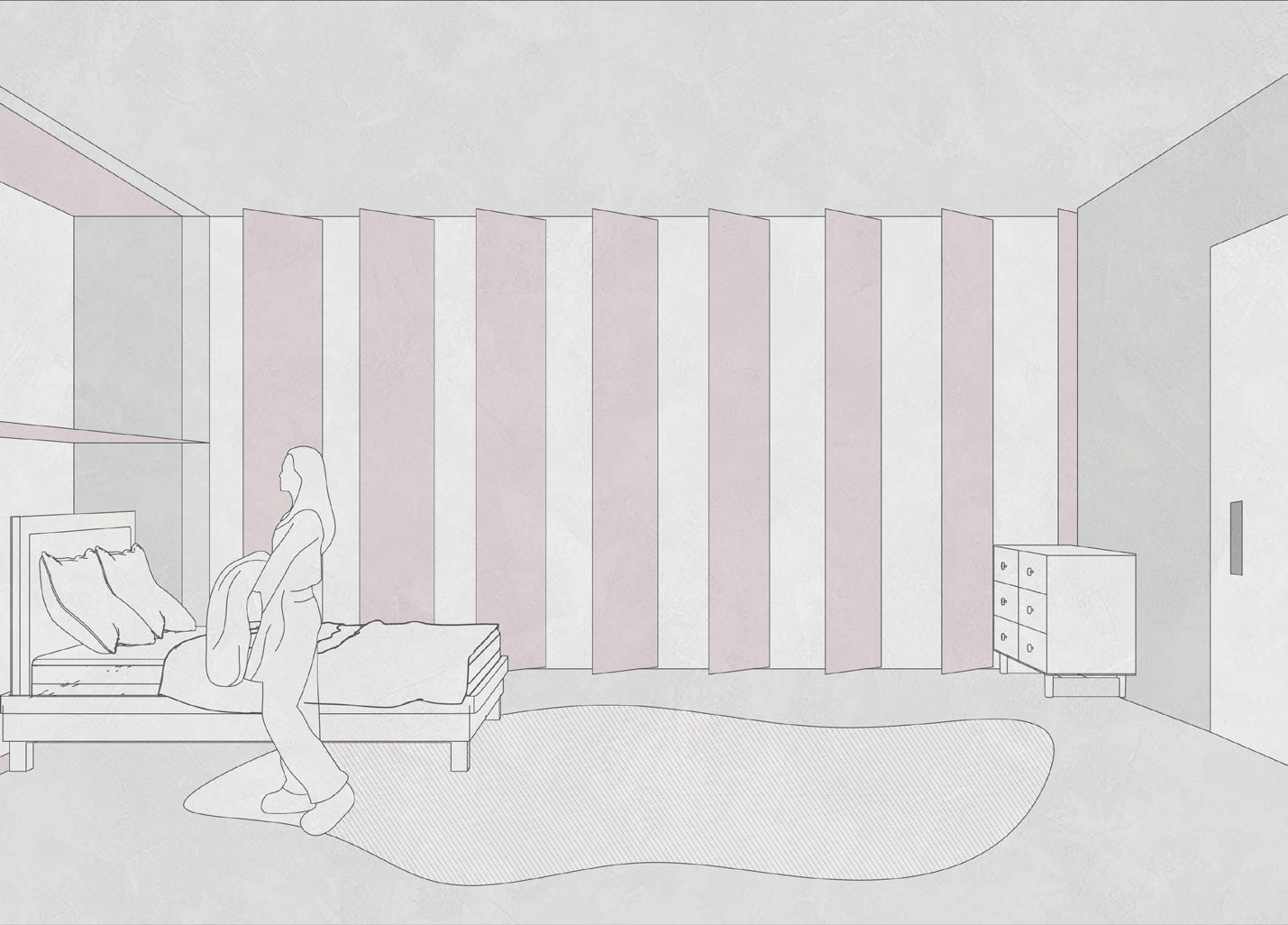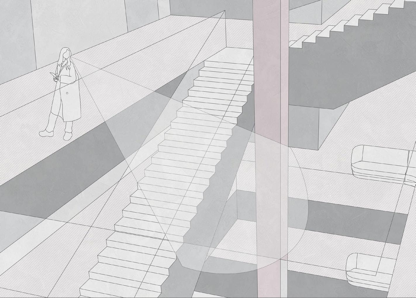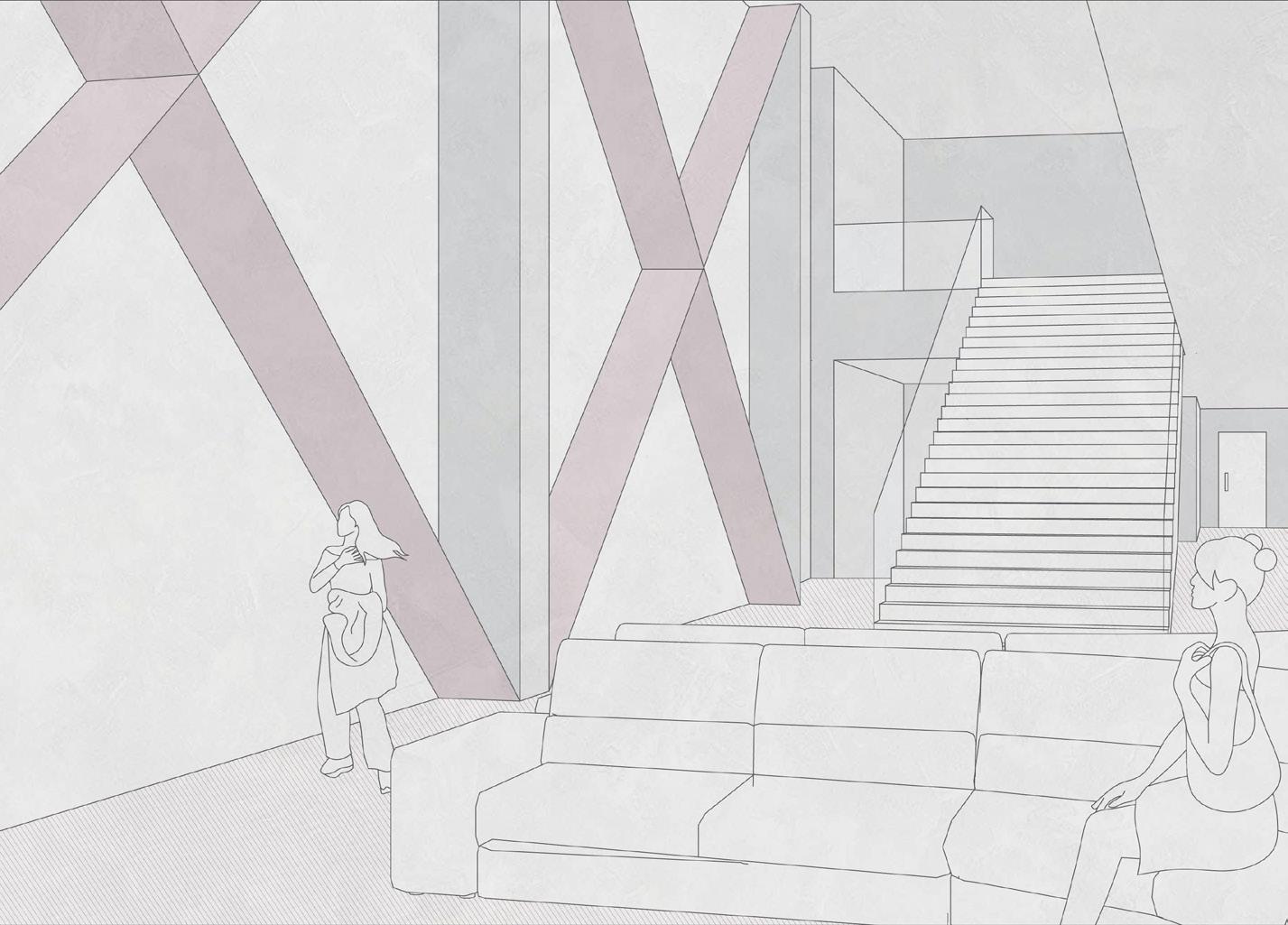 The project explores the relationship between color and light, serving as a moving story that foreshadows a terrible past and an absence. The edifice is transformed into a storytelling canvas by purposeful manipulation of light and color palettes, drawing viewers into an immersive experience that goes beyond the actual confines of space. The play of color and light acts as a metaphorical language, evoking feelings and a sense of history that are reflected in the constructed shape.