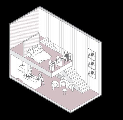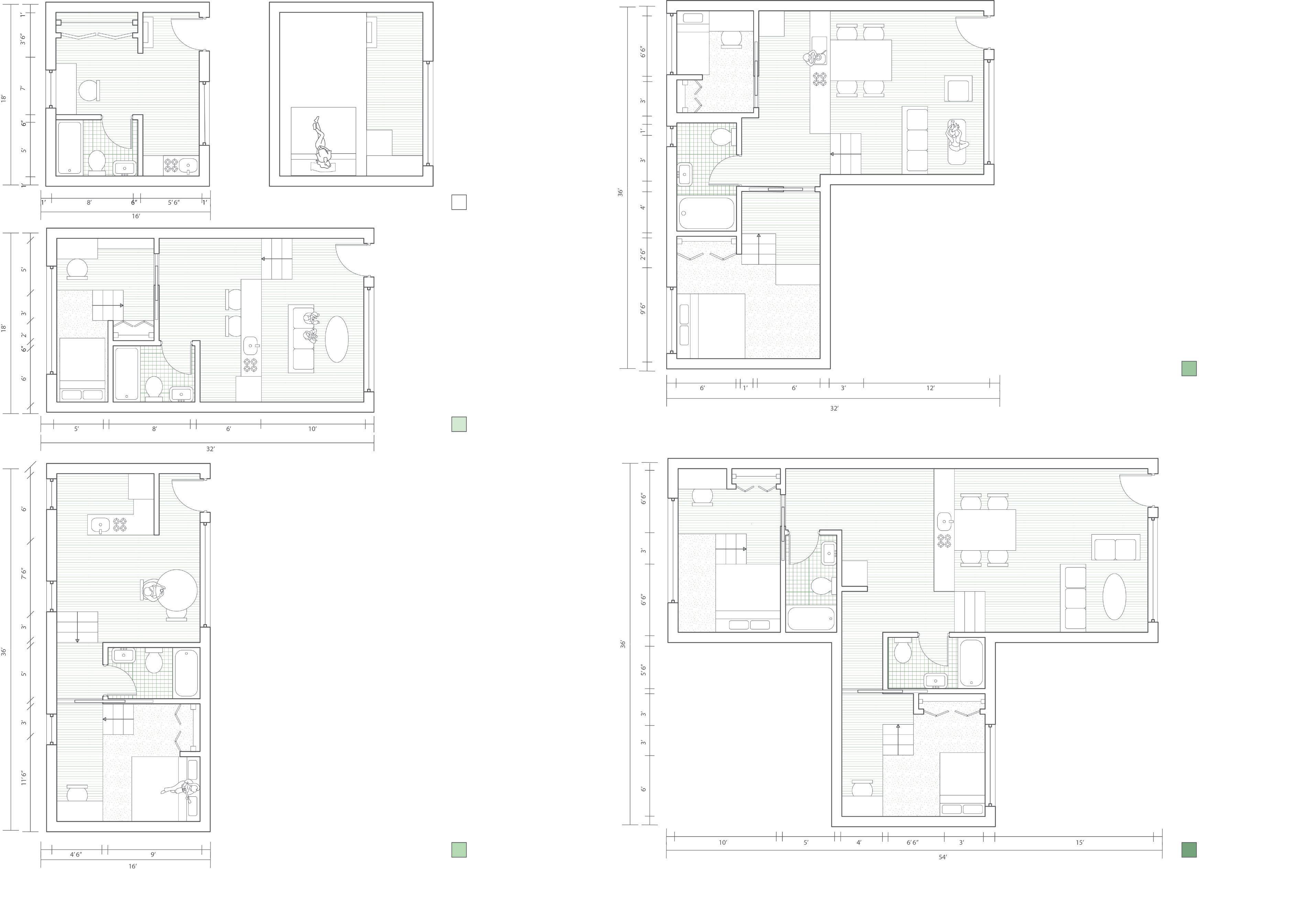The Garden is a housing project, situated in Scott’s Addition in Richmond, VA. The complex contains 35 units composed of five different types of units. Each of the units, despite each of them being designed for different living types, share similar strategies of addressing the live-work environment through elevation difference, and safety of the neighborhood.