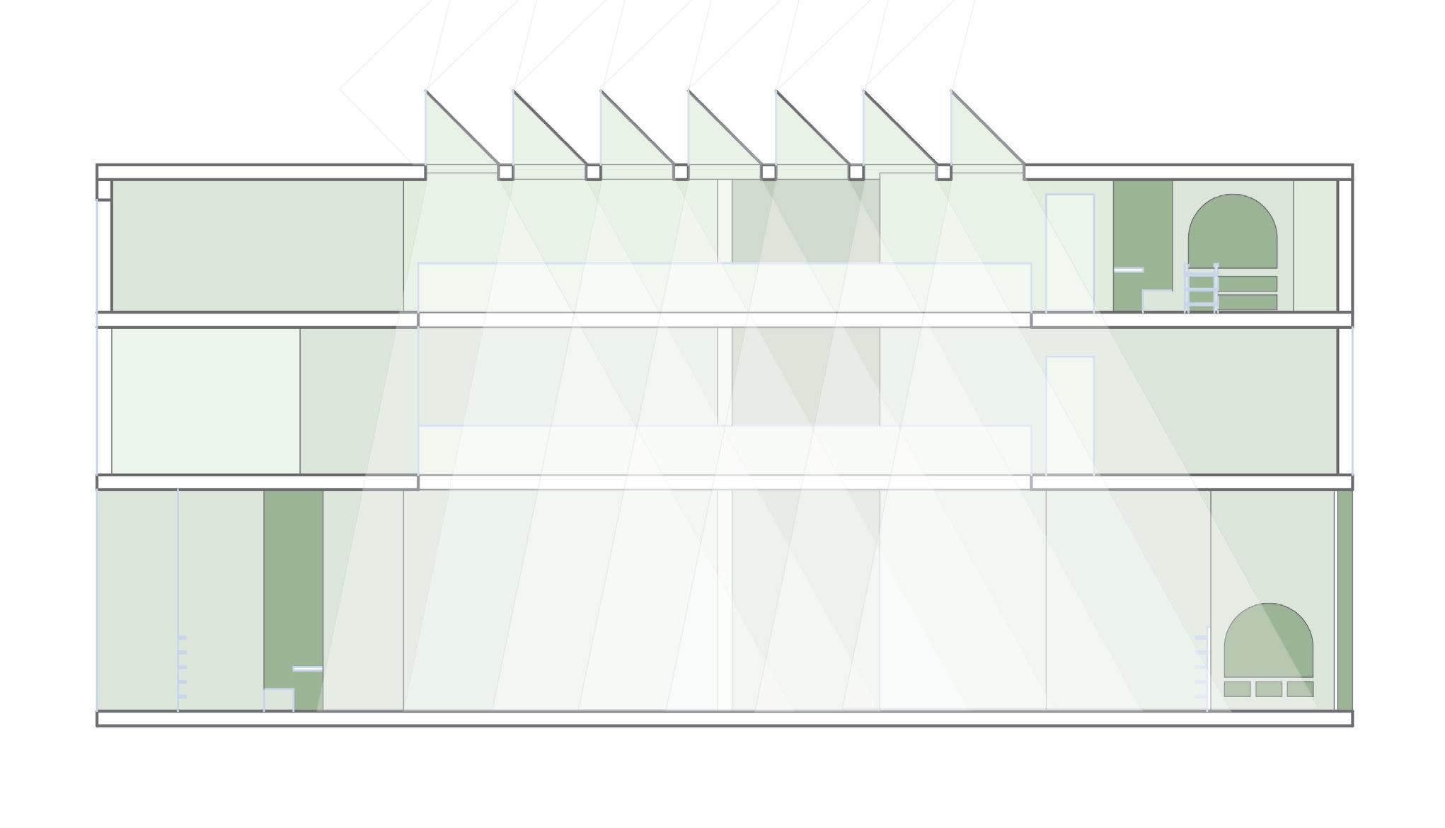 After conducting a daylight and glare analysis of the building, louver became an essential part of the facade in order to reduce the amount of glare. This choice not only lets the essential sunlight into the building, but also adds a unique fabric to the city, stimulating pedestrians and neighbors to be curious and engaged with the project.