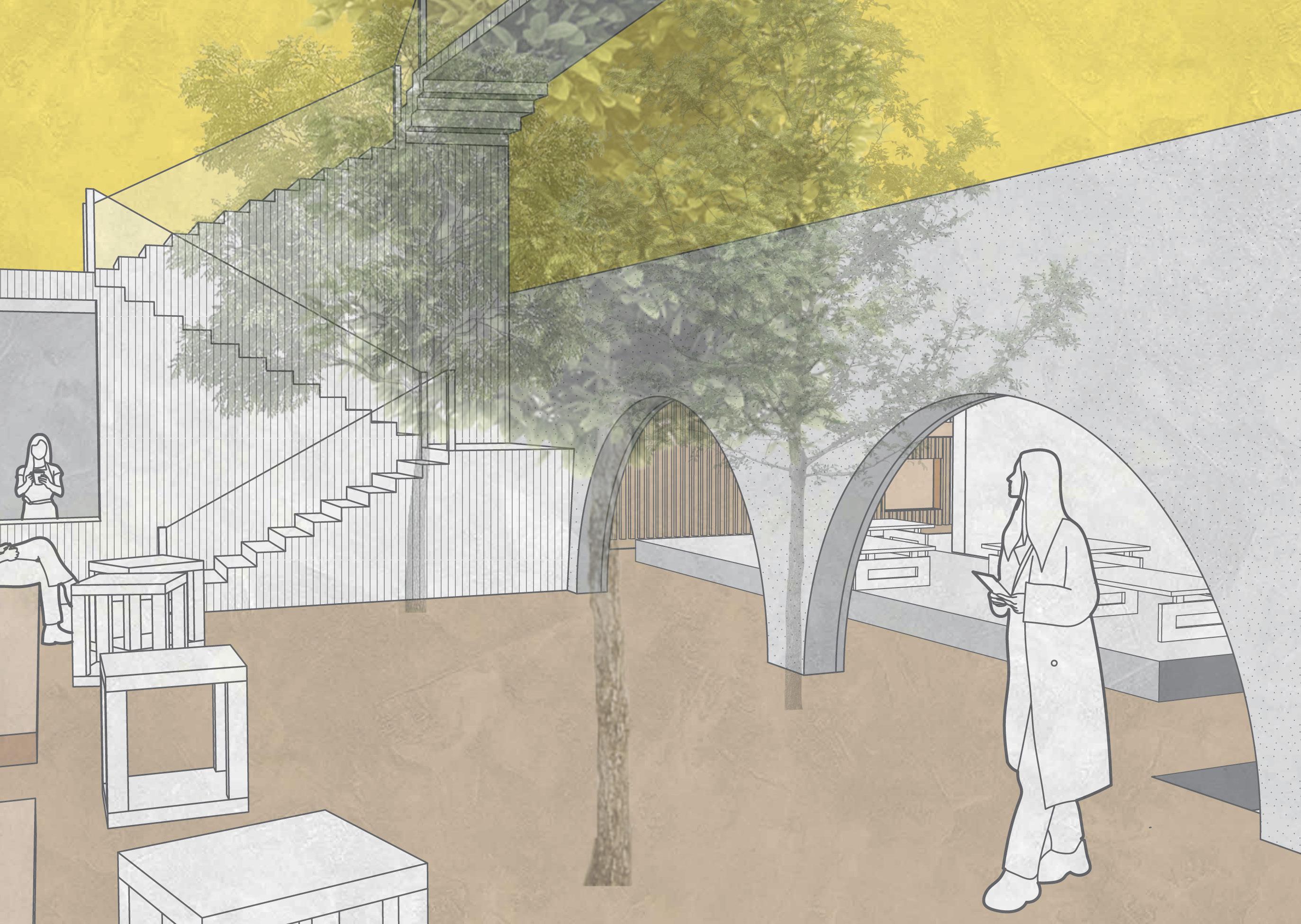The final idea explores a compound that illustrates how function and program align. Every component of the architecture has been thoughtfully created to fulfill its specific purpose and blend in well with the overarching programmatic goal. This strategy guarantees the peaceful coexistence of many functions, encouraging effectiveness and clarity in the arrangement of space. The compound becomes an example of well-thoughtout design, in which each component is essential to the overall coherence and functioning of the architectural composition.