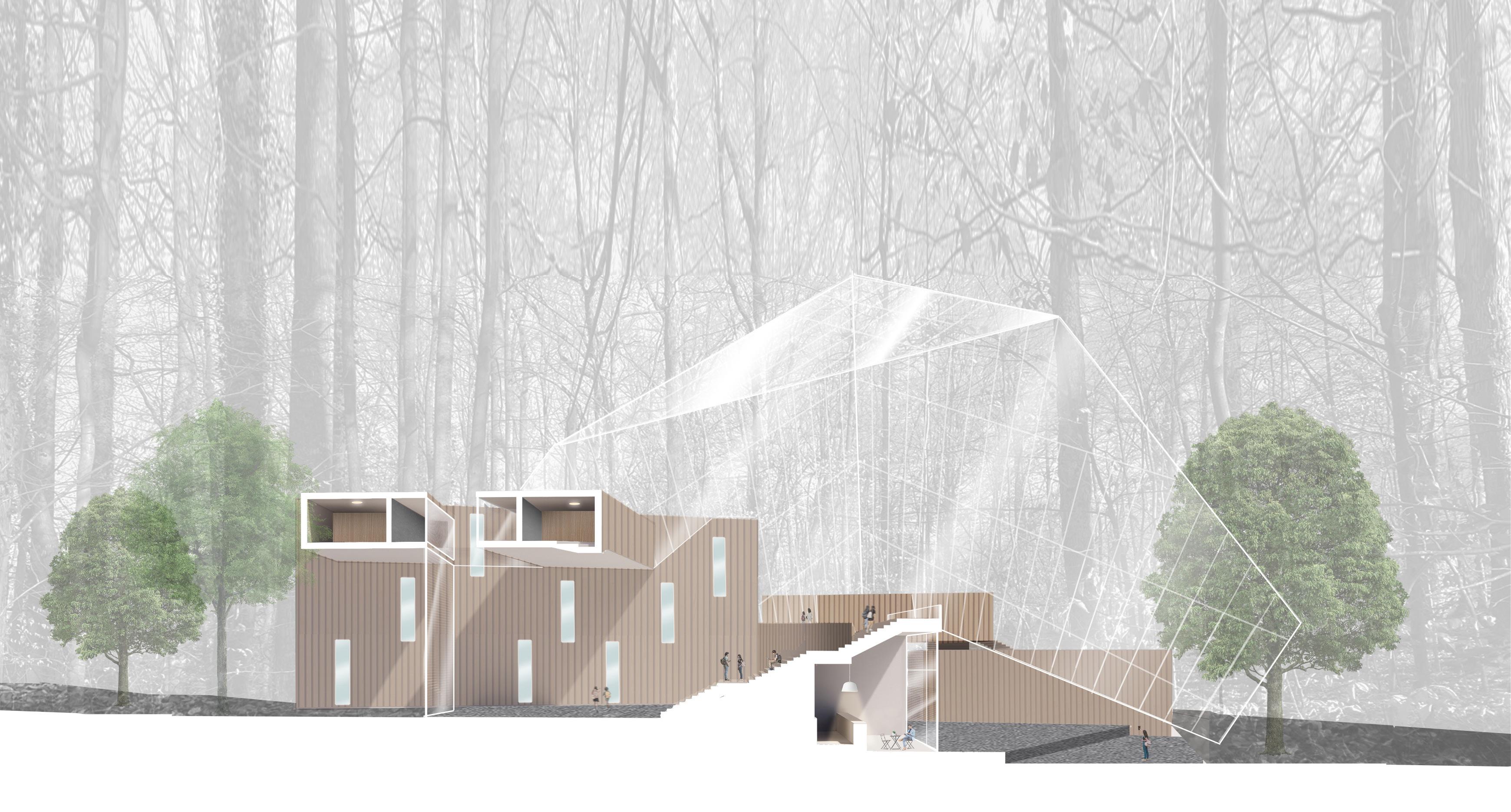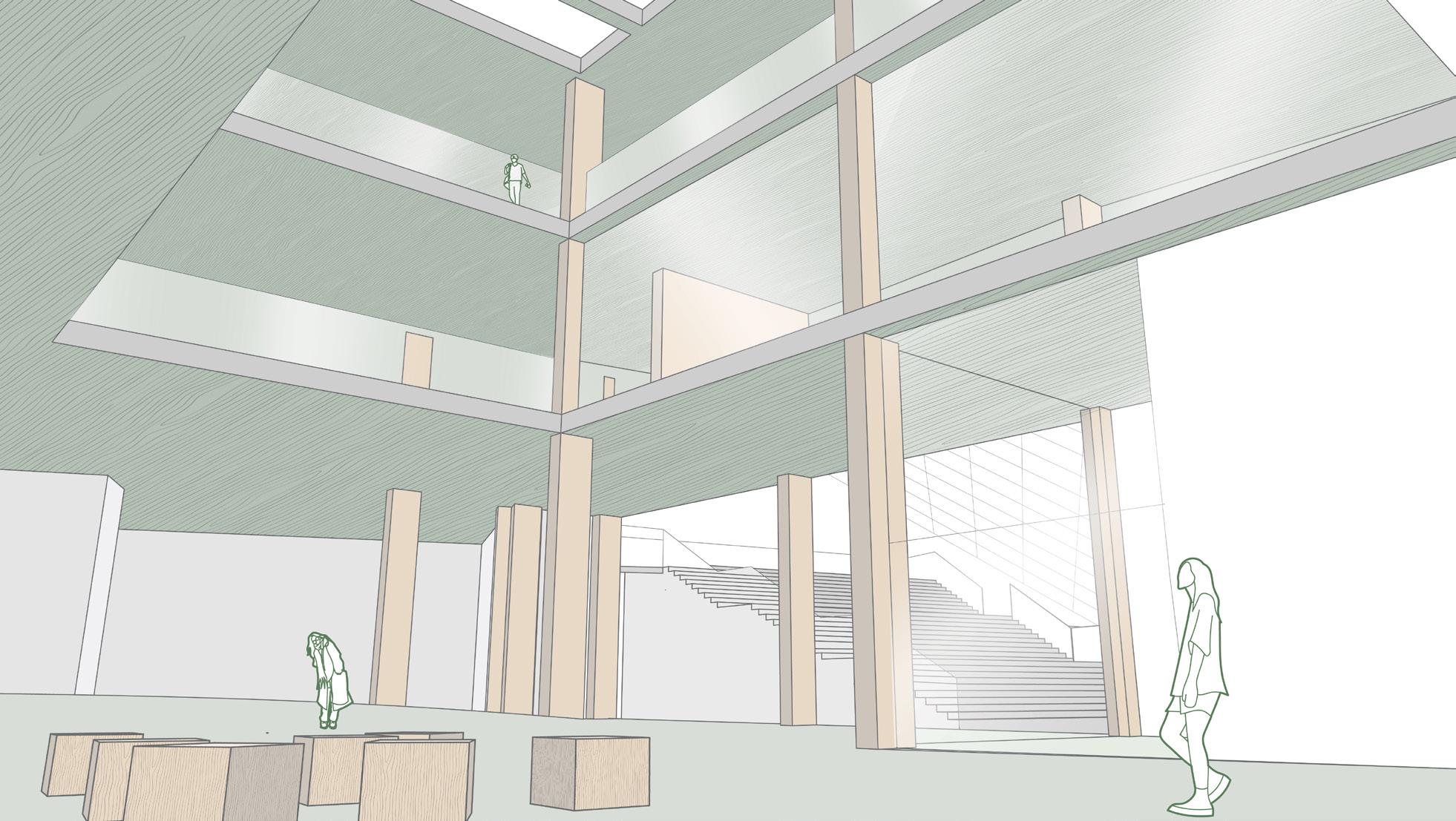 Memory Thought Advance, an interactive natural history museum for children, is a cenotaph for the connectedness of the past, present, and future of the Anthropocene. While each floor is composed of a different “era, “as humans have defined, the continuity of time is represented through the atrium that connects and ensures the communication and connection of those floors. The entire building is a manifestation of time, and interwoven nature of the floors highlights the character of the time.