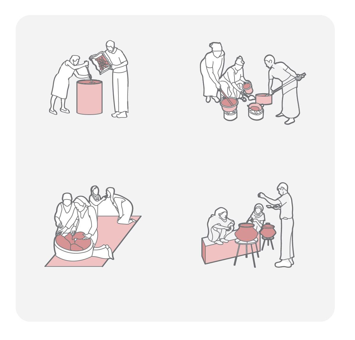 Tea drinking culture in each culture represents various types of reflection and socialization. Similar to communal cooking in this complex, tea drinking also brings community together by learning about each different culture, as well as providing time and space to interact with one another.