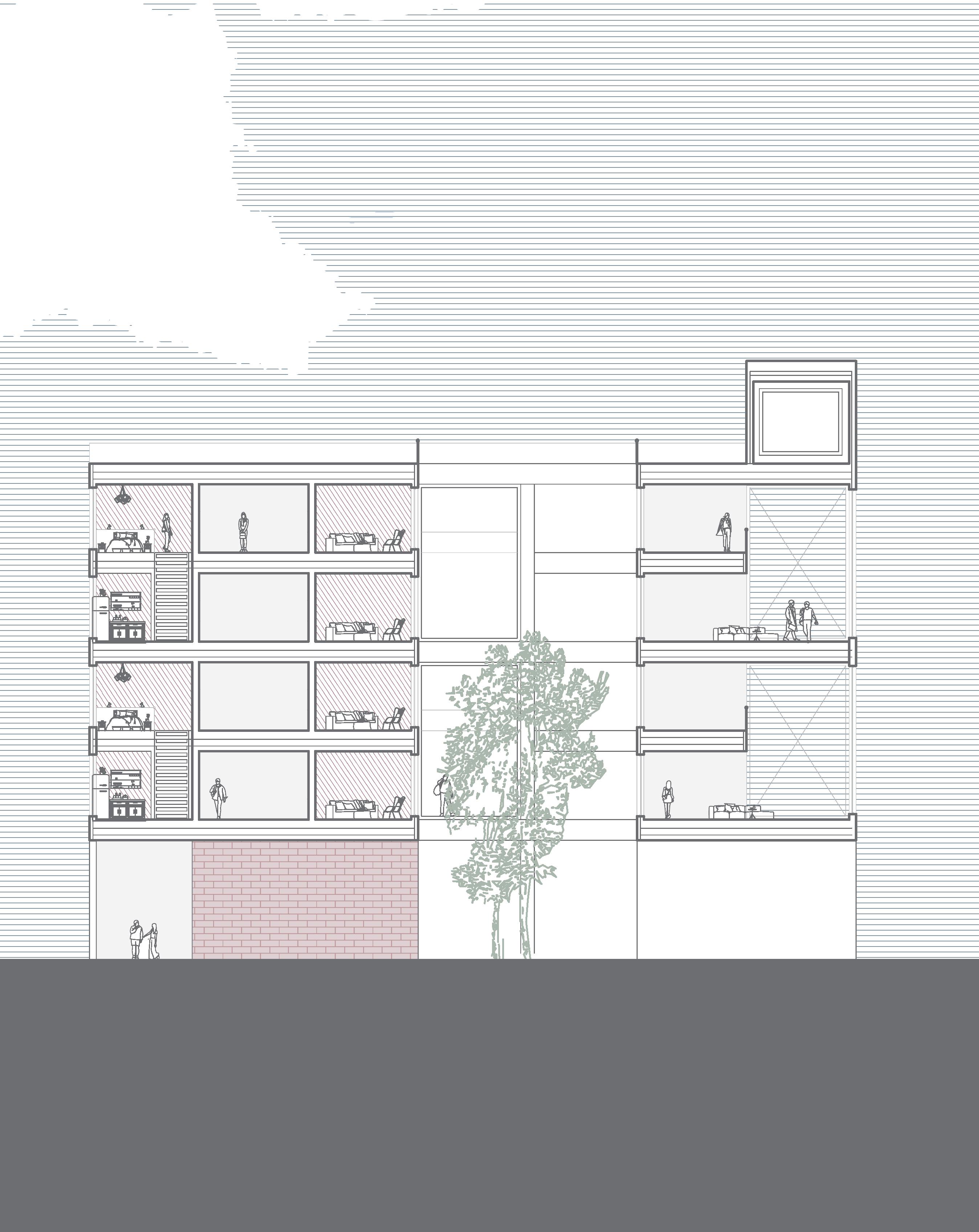 The goal of this project is to create an affordable, porous residential environment that fosters stronger neighborhood ties and opens up pathways between urban spaces. Through two key design concepts shown in the two different schemes, the project aims to address those challenges.
