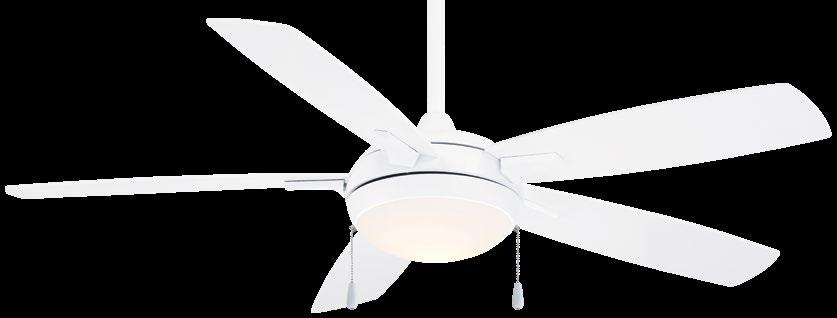 442 | The Art of Air Management Blade Sweep No of Blades Blade Pitch Motor Size RPM (Hi/Low) Warranty Light Kit Downrod ¾" ID Lead Wire Dimension A Dimension B Hanging Weight (LBS) F307 Anywhere 15" 3 23° 82 x 25 985/491 Limited Lifetime N/A 6" 118" N/A N/A 20 F402L Gyro™ Wet 42" 6 20° 82 x 25 1350/720 Limited Lifetime Integrated 6" 80" 19½" 17¾" 30 F410L Slant 36" 3 20° DC125 x 20 300/150 Limited Lifetime Integrated 6" 80" 15" 10½" 15 F448L Contractor UniPack 52" 5 12° 153 x 13 162/56 Limited Lifetime Included 4" 80" 17¼" 9¾" 17 F465L Concept IV 54" 3 14° DC 153 x 15 150/35 Limited Lifetime Integrated 6” 80" 13 1/2” 10 1/4” 18 F467L Concept III 54" 3 14° DC 153 x 15 150/35 Limited Lifetime Integrated N/A 12" 12 1/4” 9 1/4” 18 F474L Concept™ II Wet 52" 52" 3 14° 188 x 20 170/92 Limited Lifetime Integrated N/A 8" 12" 8½" 26 F476L Concept™ I Wet 52" 52" 3 14° 188 x 20 168/93 Limited Lifetime Integrated 6" 80" 20½" 17" 25 F477L Concept™ I Wet 58" 58" 3 14° 188 x 22 158/68 Limited Lifetime Integrated 6" 80" 18¼" 14¼" 27 F502L Traditional Gyro™ 42" 6 20° 80 x 25 1350/720 Limited Lifetime Integrated 4½" & 12" 80" 17" 16½" 40 F510L Spacesaver 26" 3 14° 153 x 12 392/170 Limited Lifetime Integrated N/A 8" 11" 7¼" 12 F513 New Era 52" 4 14° 172 x 16 199/67 Limited Lifetime Adaptable 6" 80" 15½" 12¾" 18 F516L Concept™ I 44" 44" 3 14° 153 x 15 189/91 Limited Lifetime Integrated 6" 80" 17½" 14¼" 22 F517L Concept™ I 52" 52" 3 14° 172 x 20 183/70 Limited Lifetime Integrated 6" 80" 17½" 14¼" 25 F518L Concept™ II 44" 44" 3 14° 153 x 15 181/79 Limited Lifetime Integrated N/A 8" 11½" 8¼" 24 F519L Concept™ II 52" 52" 3 14° 172 x 20 172/66 Limited Lifetime Integrated N/A 8" 11½" 8¼" 27 F521L Aluma 52" 4 12° 153 x 15 187/100 Limited Lifetime Integrated 6" 80" 15¾" 12¼" 17 F522L Mojo 52" 5 12° 153 x 15 162/60 Limited Lifetime Included 6" 80" 17" 11½" 18 F523L Aluma Wet 52" 4 12° 153 x 20 166/73 Limited Lifetime Integrated 6" 80" 16½" 13¼" 19 F524 Roto 52" 3 22° 153 x 15 210/112 Limited Lifetime N/A 6" 80" 11¾" 9½" 11 F532 Sunseeker 60" 5 14° 188 x 25 135/50 Limited Lifetime Integrated 6" 80" 16½" 14¾" 28 F533 Mojo II 52" 4 14° 153 x 15 168/84 Limited Lifetime Integrated N/A 12" 12½" 8" 18 F534L Lun-Aire 54" 5 12° 172 x 17 150/70 Limited Lifetime Integrated 6" 80" 15¼" 10½" 25 F539 Great Room Traditional 72" 5 14° 212 x 25 126/45 Limited Lifetime Adaptable 6" 80" 15¼" 13" 35 F541L Cone 54" 5 14° DC123 x 30 169/102 Limited Lifetime Integrated 6" 74" 13¾" 11½" 14 F543L Swept 56" 4 26° DC123 x 30 191/51 Limited Lifetime Integrated 6" 80" 14½" 12" 14 F544L Calais™ 52" 5 14° 172 x 17 165/62 Limited Lifetime Integrated N/A 8" 12" 7½" 27 F546 Contractor 42" 42" 5 12° 153 x 10 214/113 Limited Lifetime Adaptable 4" 80" 12¼" 9¾" 14 F547 Contractor 52" 52" 5 12° 153 x 13 162/67 Limited Lifetime Adaptable 4" 80" 12¾" 10¼" 13 F551 Watt 60" 5 13° 125 x 30 170/60 Limited Lifetime Adaptable 6” 80" 16” 13” 15 F552L Watt II 60" 5 13° DC 125 x 30 170/60 Limited Lifetime Integrated 6” 80" 20 1/2” 13” 20 F553L Minute 52" 5 12° DC 145 x 18 183/69 Limited Lifetime Adaptable 6" 80" 18" 13 ½" 25 F556 Contractor Plus 52" 5 12° 153 x 15 183/69 Limited Lifetime Adaptable 6" 80" 14¾" 13" 15 F556L Contractor LED 52" 5 12° 153 x 15 183/69 Limited Lifetime Adaptable 6" 80" 16" 14¼" 15 F562 Supra® 32" 32" 6 22° 153 x 16 267/93 Limited Lifetime Adaptable 6" 80" 14¾" 13" 15