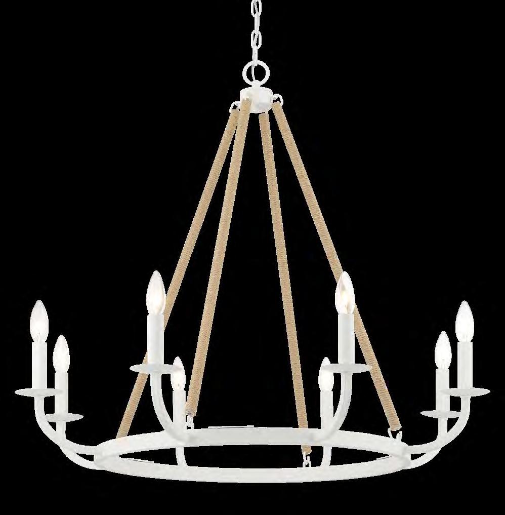 A. 2128-655 8 Light Chandelier 34”Dia. x 30”H 8/60W Candelabra Base Natural Rope Sand White Finish B. 2122-655 2 Light Wall Sconce81/2”W x 11”H x 6"Ext. 2/60W Candelabra Base C. 2126-655 6 Light Chandelier 28”Dia. x 26”H 6/60W Candelabra Base