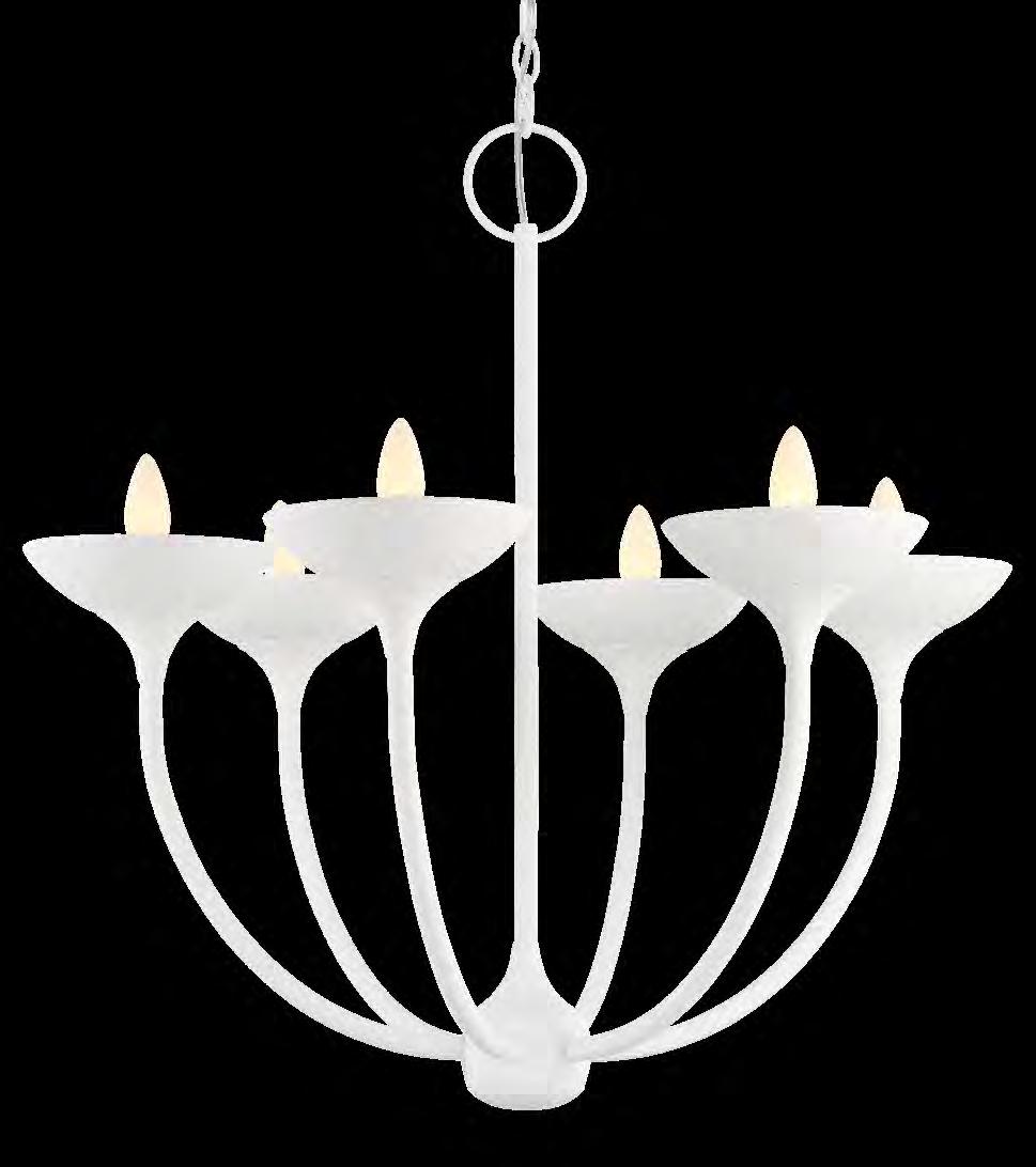 A. 5908-655 12 Light Chandelier 38”Dia. x 141/4”H 12/60W Candelabra Base Sand White Finish B. 5907-655 10 Light Chandelier 30”Dia. x 153/4”H 10/60W Candelabra Base