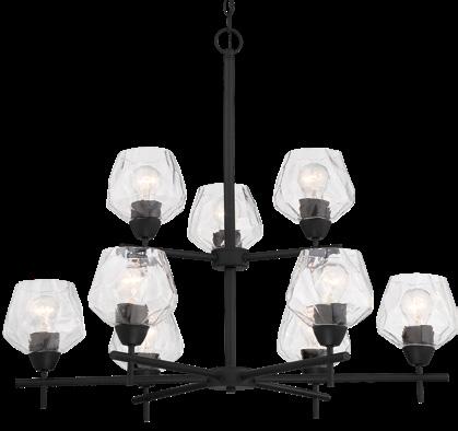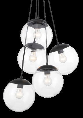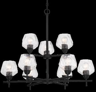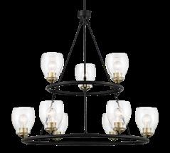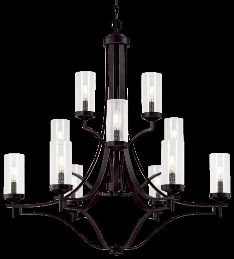 A. 2748-66A 8 Light Pendant 32”W x 241/4”H x 301/4”Ext. 8/40W Candelabra Base Clear Glass Coal Finish B. 2796-66A 3 Light Pendant 24”Dia. x 113/4”H 3/60W Candelabra Base C. 2795-66A 5 Light Pendant 29”Dia. x 12”H 5/60W Candelabra Base Auresa