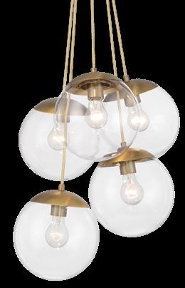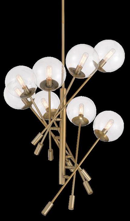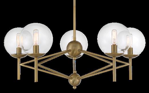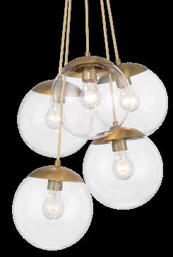 A. 2748-695 8 Light Pendant 32”W x 241/4”H x 301/4”Ext. 8/40W Candelabra Base Clear Glass Soft Brass Finish B. 2796-695 3 Light Pendant 24”Dia. x 113/4”H 3/60W Candelabra Base C. 2795-695 5 Light Pendant 29”Dia. x 12”H 5/60W Candelabra Base Auresa