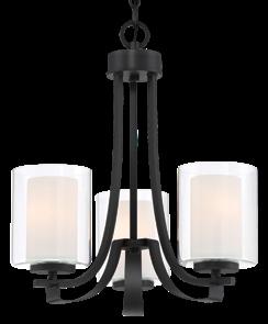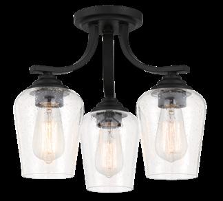 4883-66A 3 Light Semi Flush Semi Flush: 20¼”W x 17½”H Chandelier: 20¼”W x 19”H 3/60W Medium Base Etched Glass Coal Finish