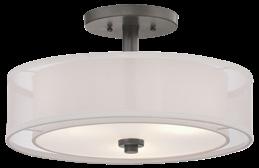 A. 4107-84 3 Light Semi-Flush 15”Dia. x 10”H 3/60W Medium Base Translucent Silver Linen with Off-White Linen Inner Shade Frosted White Glass Diffuser Brushed Nickel Finish B. 4107-66 Sand Coal Finish C. 4107-172 Smoked Iron Finish