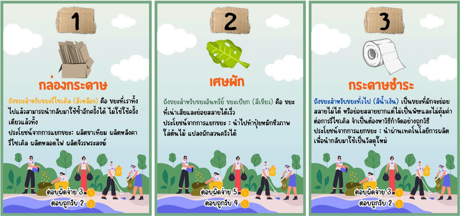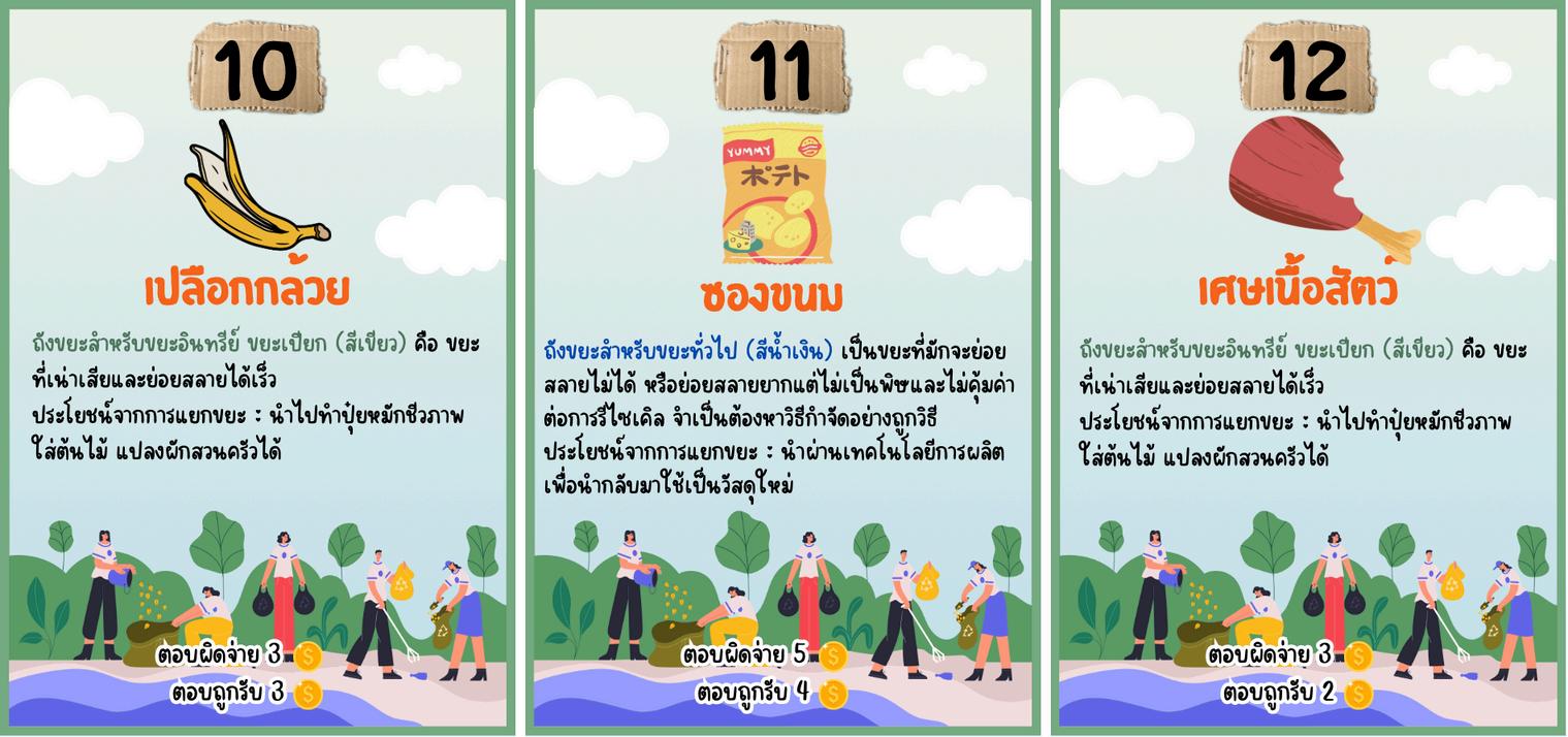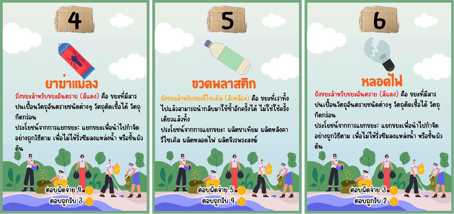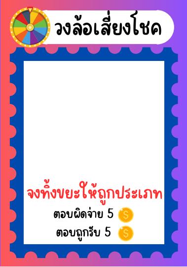 game เมอเปดบตรวงลอเสยงโชคแลว ใหนาขยะทระบไวในบตรไปแยกลงขยะใหถกประเภท ถาแยกถกจะไดรบรางวลทระบไวตามบตร