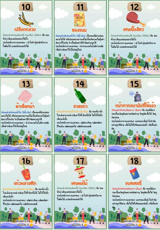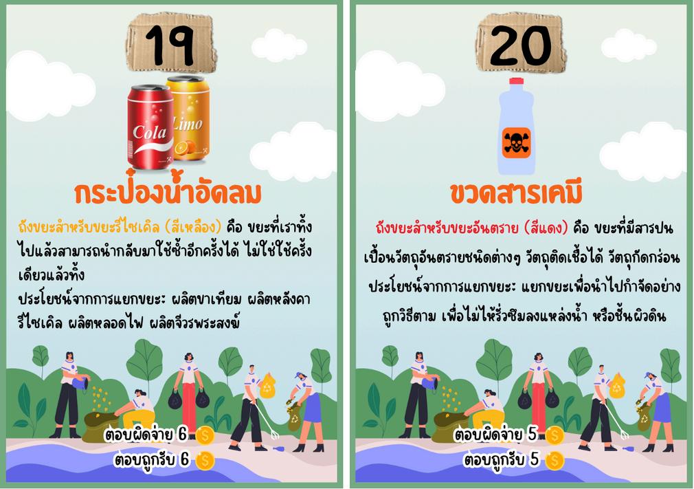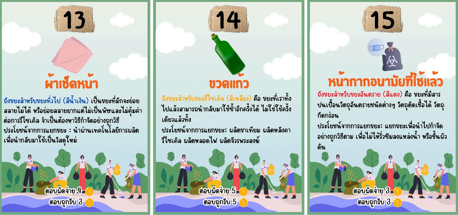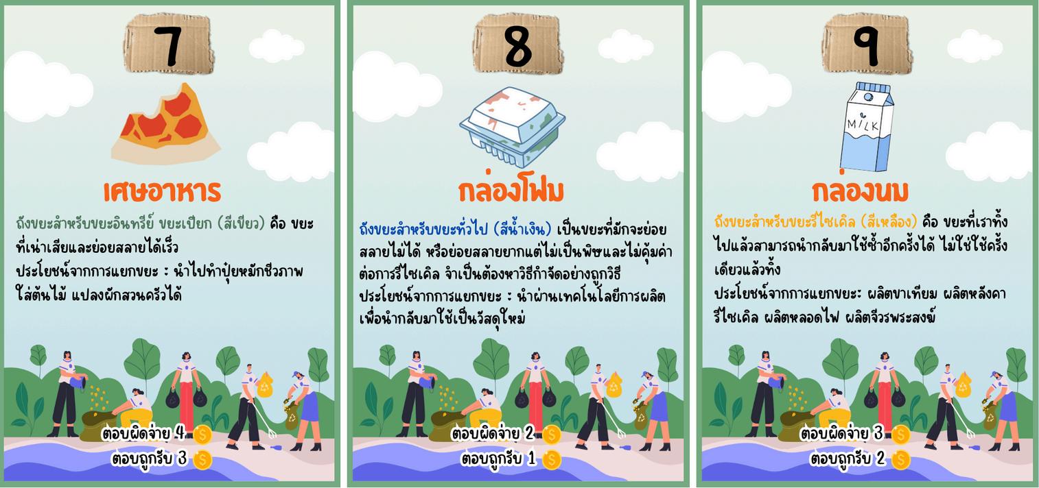 game เมอเปดบตรวงลอเสยงโชคแลว ใหนาขยะทระบไวในบตรไปแยกลงขยะใหถกประเภท ถาแยกถกจะไดรบรางวลทระบไวตามบตร