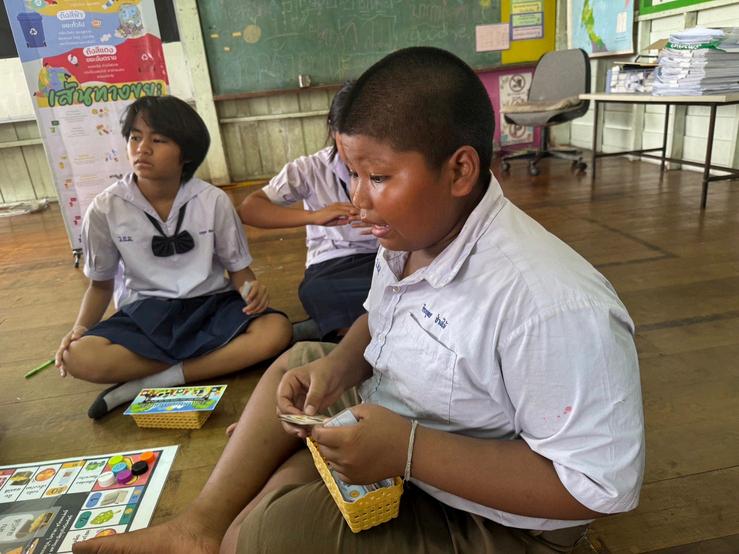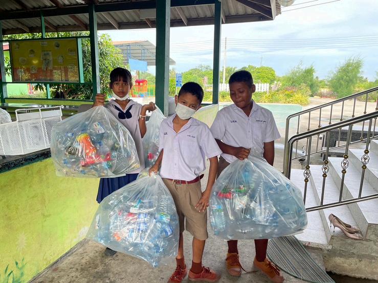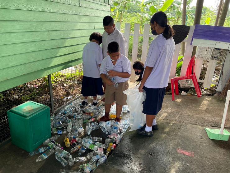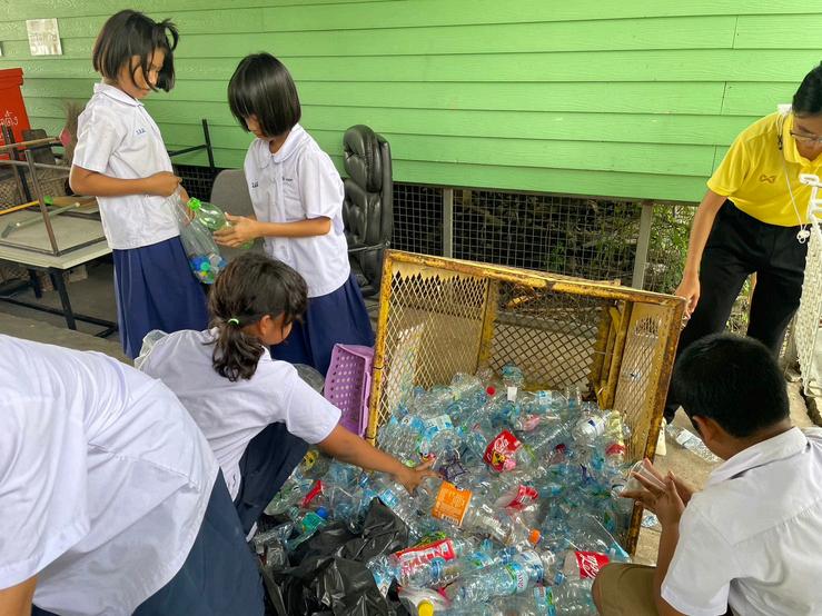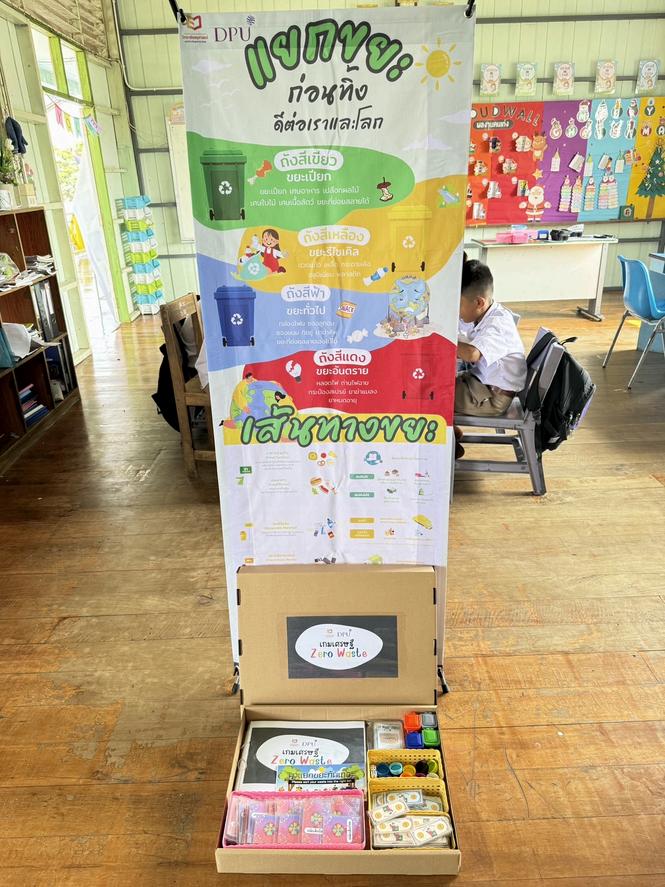 ผเรยนลงมอปฏบตหลงจากเรยนรดวยสอ เกมเศรษฐ Zero Waste โดยการทดลองแยกขยะบรเวณรอบโรงเรยน