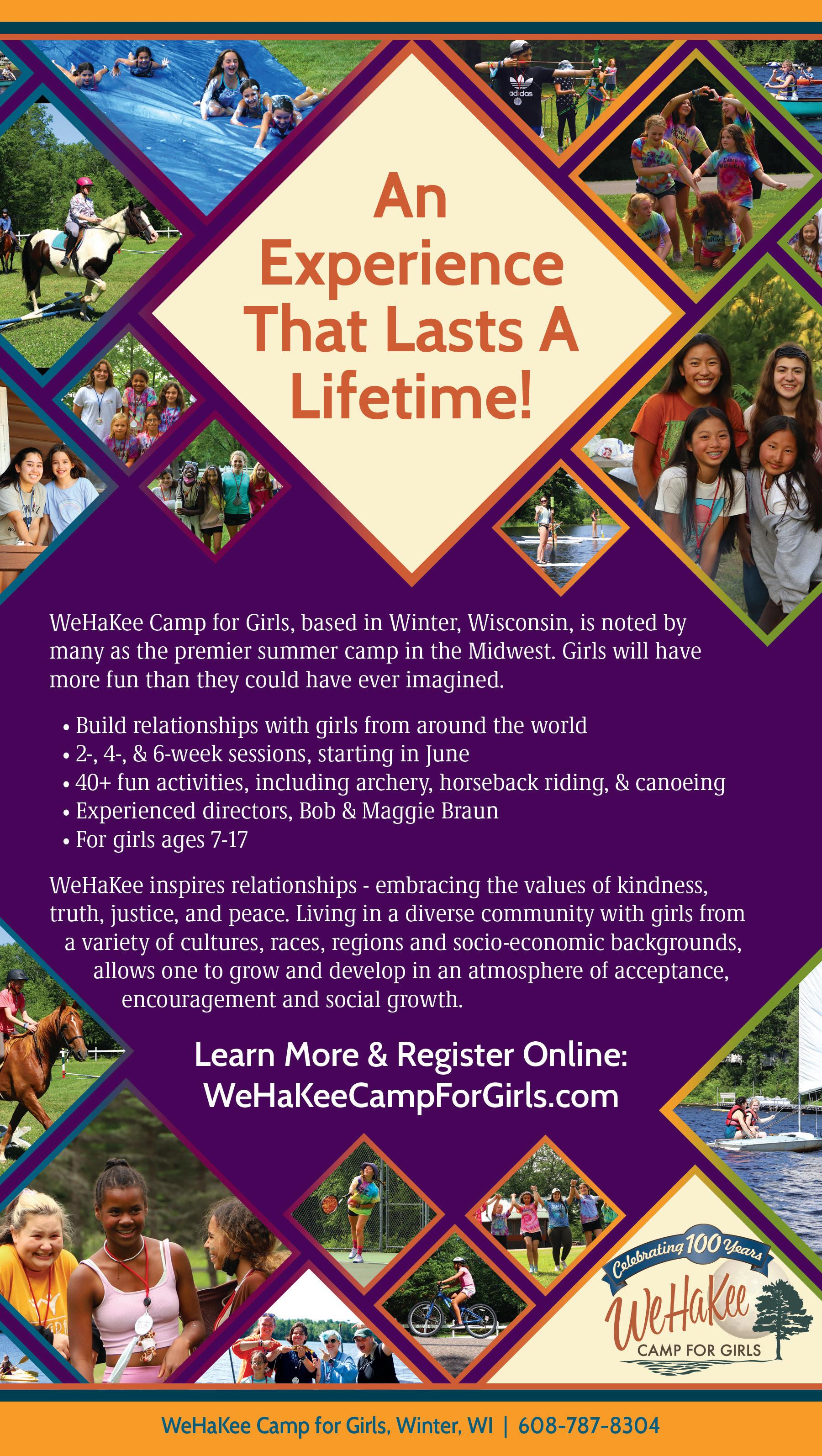 WeHaKee Camp for Girls is a place where girls can discover themselves, make new friends, and have the time of their lives. With traditions, values, and fun, WeHaKee is the summer camp experience they’ve always dreamed of. So, come join us this summer, and find out just how much fun discovering oneself at camp can be!