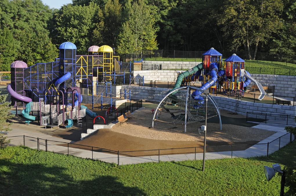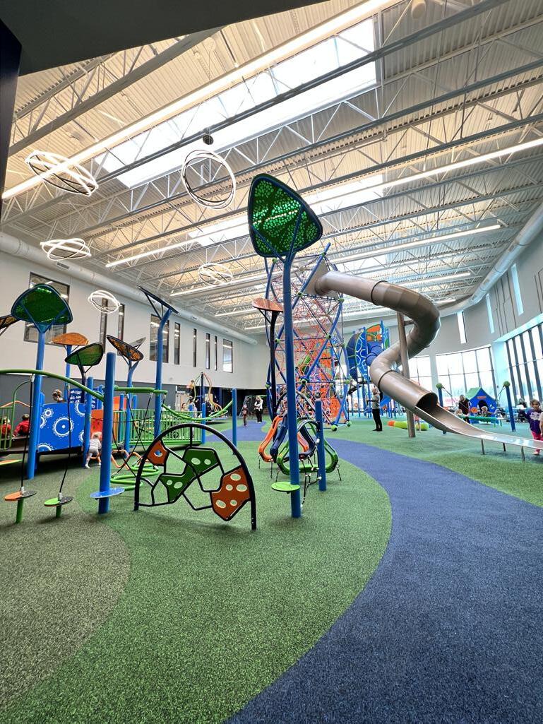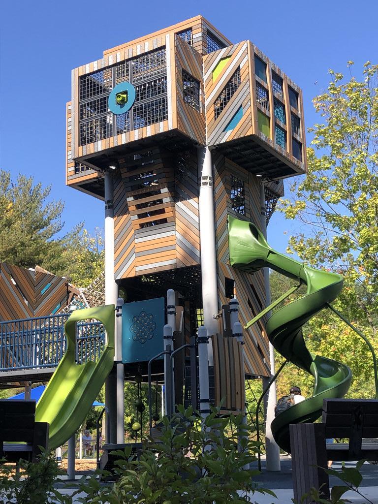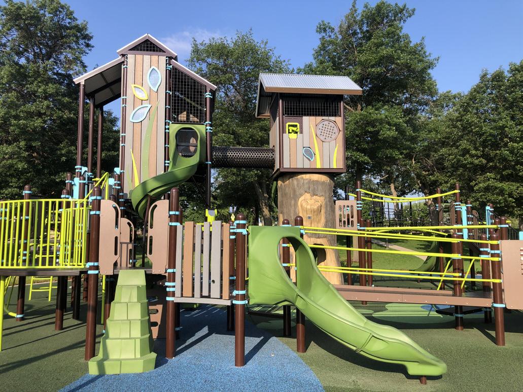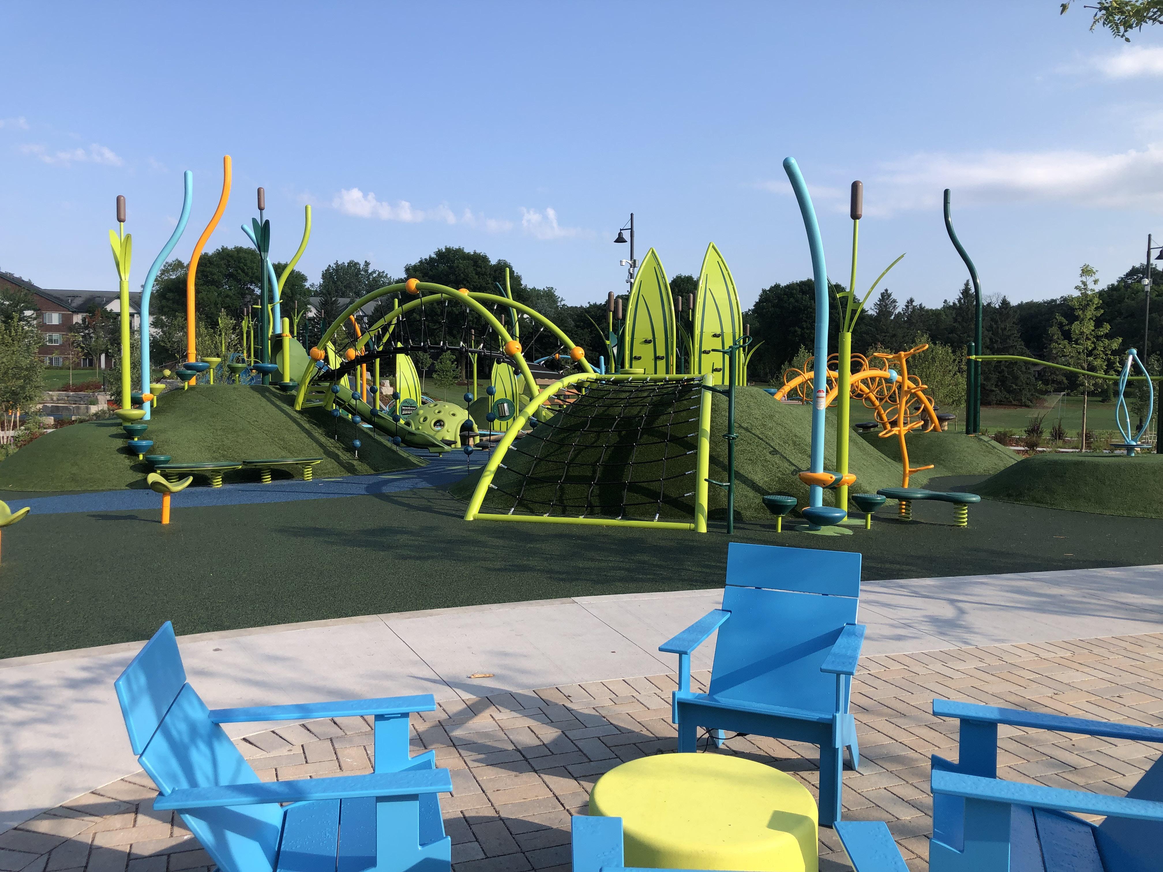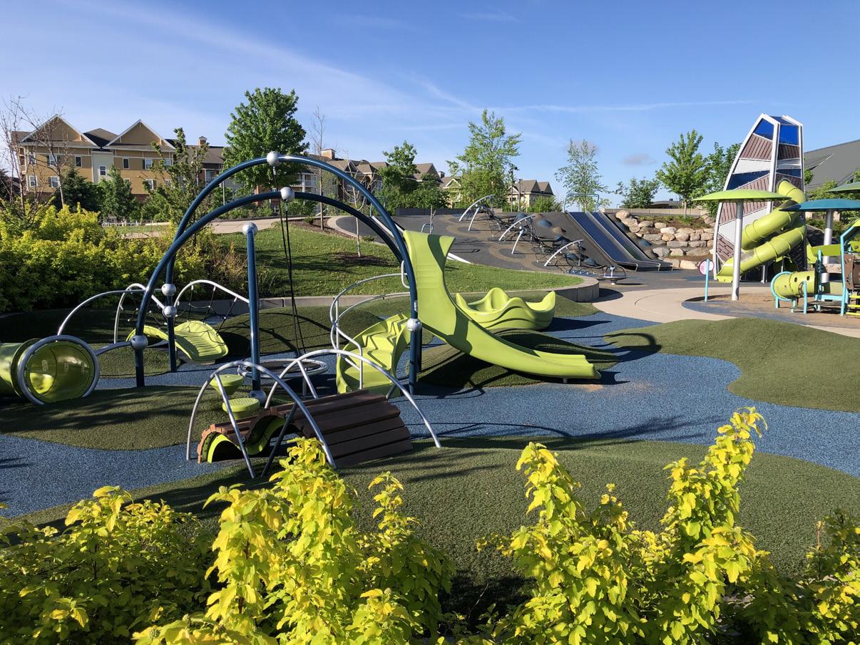 Families are invited to try out this park’s interactive water-play system, a lily-pad walk, a three-story slide, sand play area, and more.