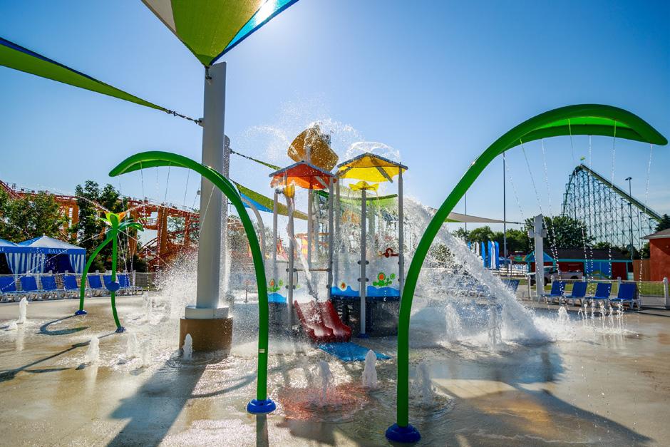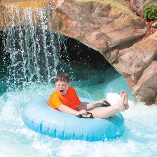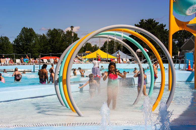 This destination features a three-story water slide, complete with lights and a jukebox system, a zero-depth-entry beach area, an interactive splashing palm tree, a boat slide, a water walk, water volleyball and basketball and giant floating sea creatures. Shoreview • tinyurl.com/tropics-shoreview