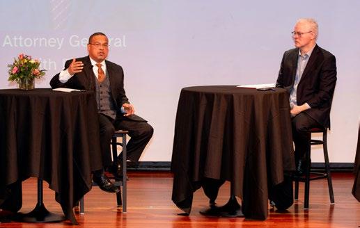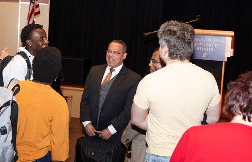 Minnesota Attorney General Keith Ellison, who also served as Minnesota in the U.S. Congress for 12 years, also visited campus. He spoke with students about the enforcement of anti-trust law in technology, agriculture,