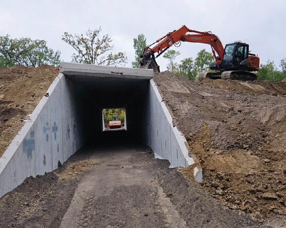 under Highway 71. This tunnel was built last fall in anticipation of the trail and creates a safe crossing for trail users at a busy highway.