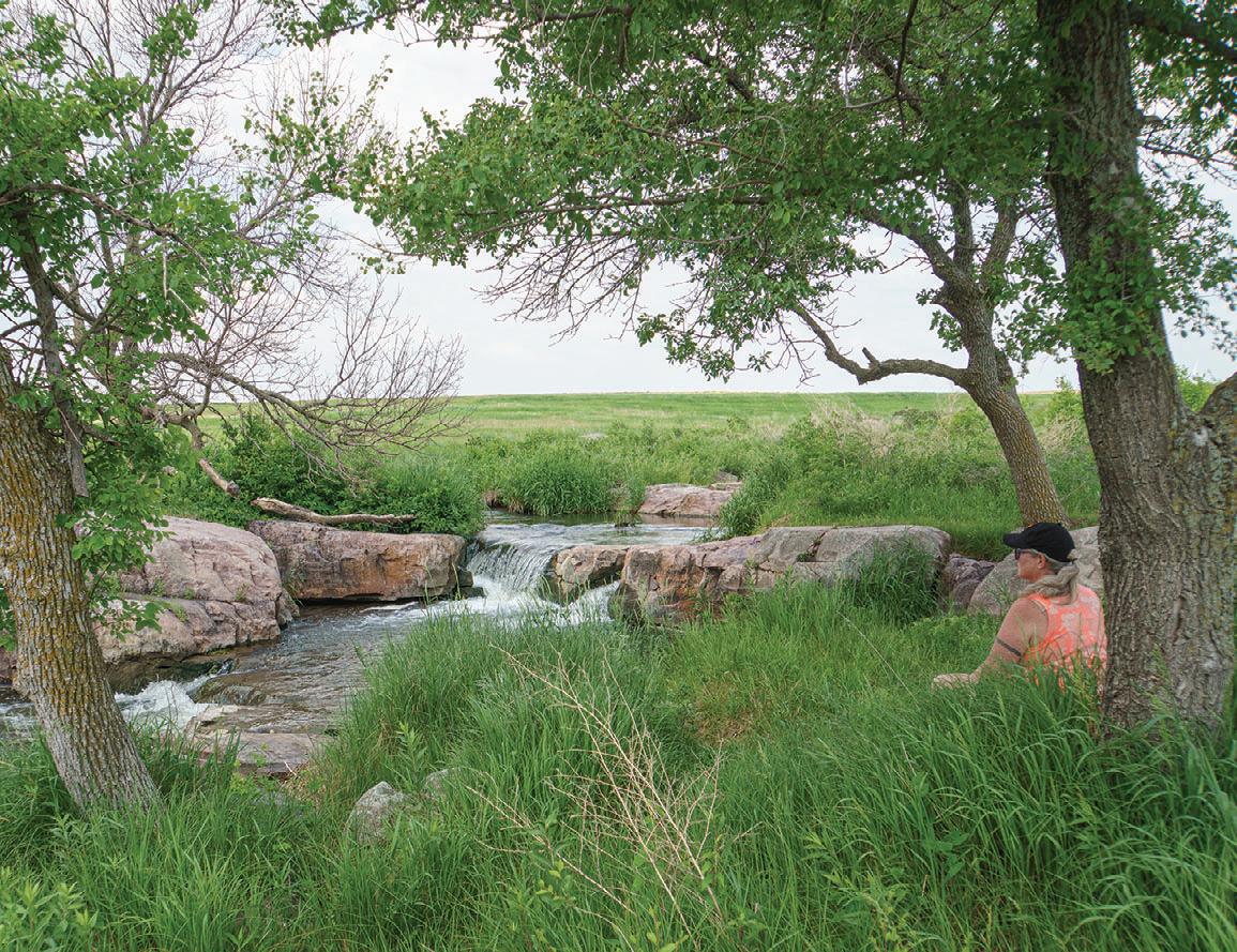 the surrounding farms, there was just us, the wind, the grasses, the birds and a sky that really did seem close enough to touch. Something we didn’t expect to see was a waterfall. We sat in the shade of a small stand of trees surrounding the falls for a while and listened to the water rush over the rocky outcroppings.