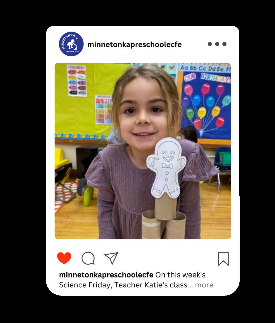 Join us for the Minnetonka Preschool & Junior Explorers Open House 9:30-11:30 am Saturday, January 28 Minnetonka Community Education Center (MCEC) This event is free of charge and sponsored by Minnetonka Preschool and the PTO/ECFE Advisory Council. Childcare will be provided during each presentation. Non Profit Org. U.S. Postage PAID Permit No. 1287 Hopkins, Minn. Minnetonka Community Education 4584 Vine Hill Road Excelsior, MN 55331 Meet Teachers Ask Questions Attend Tour Classrooms 2023-24 Registration Begins February 2 • 7:30 am MinnetonkaCommunityEd.org • 952-401-6812