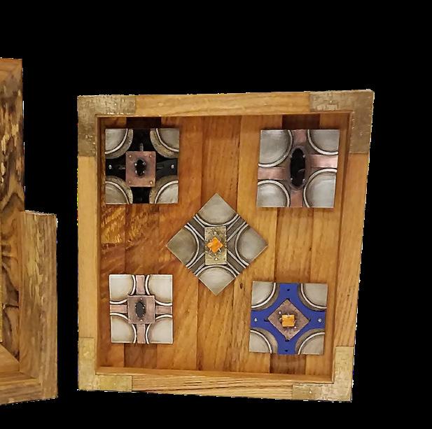 to learn new art techniques when creating pieces for our shows, including woodworking, laser engraving, and stone setting. She described her recent work as experimental and has been humbled and flattered to be included in the Annual for the last several years.