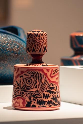 One of Minnetrista’s oldest exhibition traditions, our Annual Juried Art Show, has celebrated the talents of East Central Indiana artists for 33 years. Every year, a new juror brings their unique perspective to this show. In 2022, professional “fabric collage” artist Joel Fremion brought his deep appreciation for fine craftsmanship to the exhibit, selecting a wide variety of threedimensional artwork, including glass and papier mâche sculpture, ceramic vessels, textile art, jewelry, and metalwork pieces. In him, many of our selected artists found validation and encouragement to continue in their craft, rewards perhaps even more valuable than any cash prize.