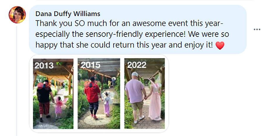 As a tribute to Elisabeth “Betty” Ball and her unshakable belief in faeries, thousands of faeries fly into Oakhurst Gardens every July for the enchanted Faeries, Sprites, & Lights (FSL) at Minnetrista. In 2022, Dana and Caleb Williams attended the inaugural sensory friendly session of FSL with their 12 year-old-daughter, Stella. They have attended as a family since Stella was four years old and find joy seeing her immersed in the creativity of it all. She loves to dress up, and Dana has fun doing her makeup!