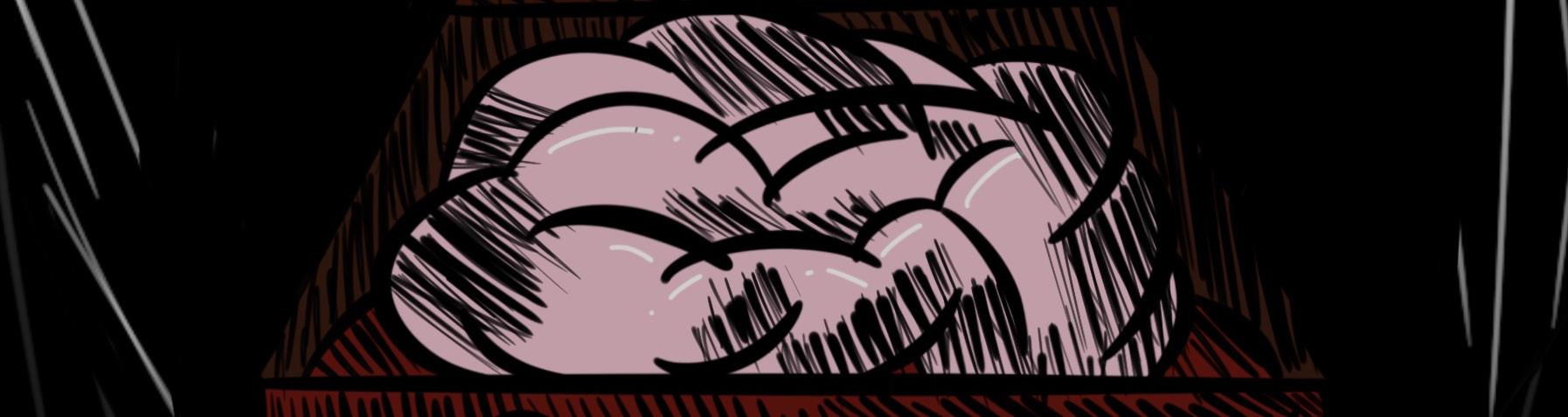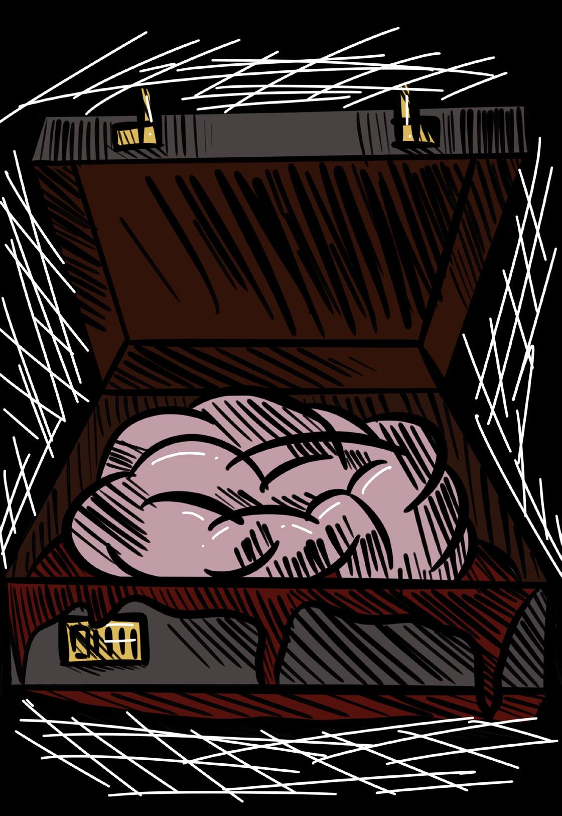 以腦袋器官作為重點,表達出盒裡的腦袋代表著執著,當想法出現 了扭曲,那麼人們都會拋下自己所擁有的價值觀,人們都被自己的 扭曲有所改變。
